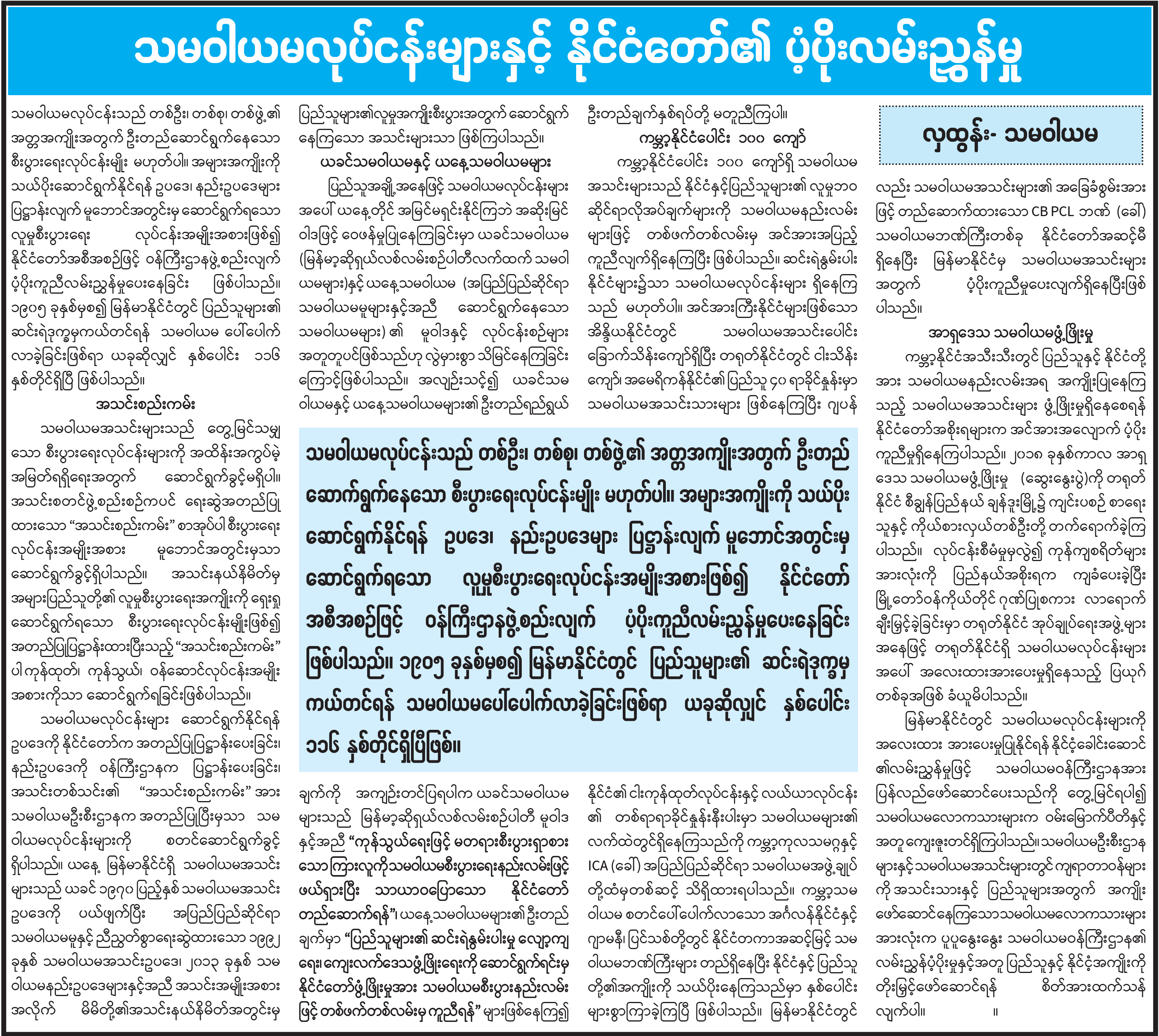 သမဝါယမလုပ်ငန်းများနှင့် နိုင်ငံတော်၏ ပံ့ပိုးလမ်းညွှန်မှု