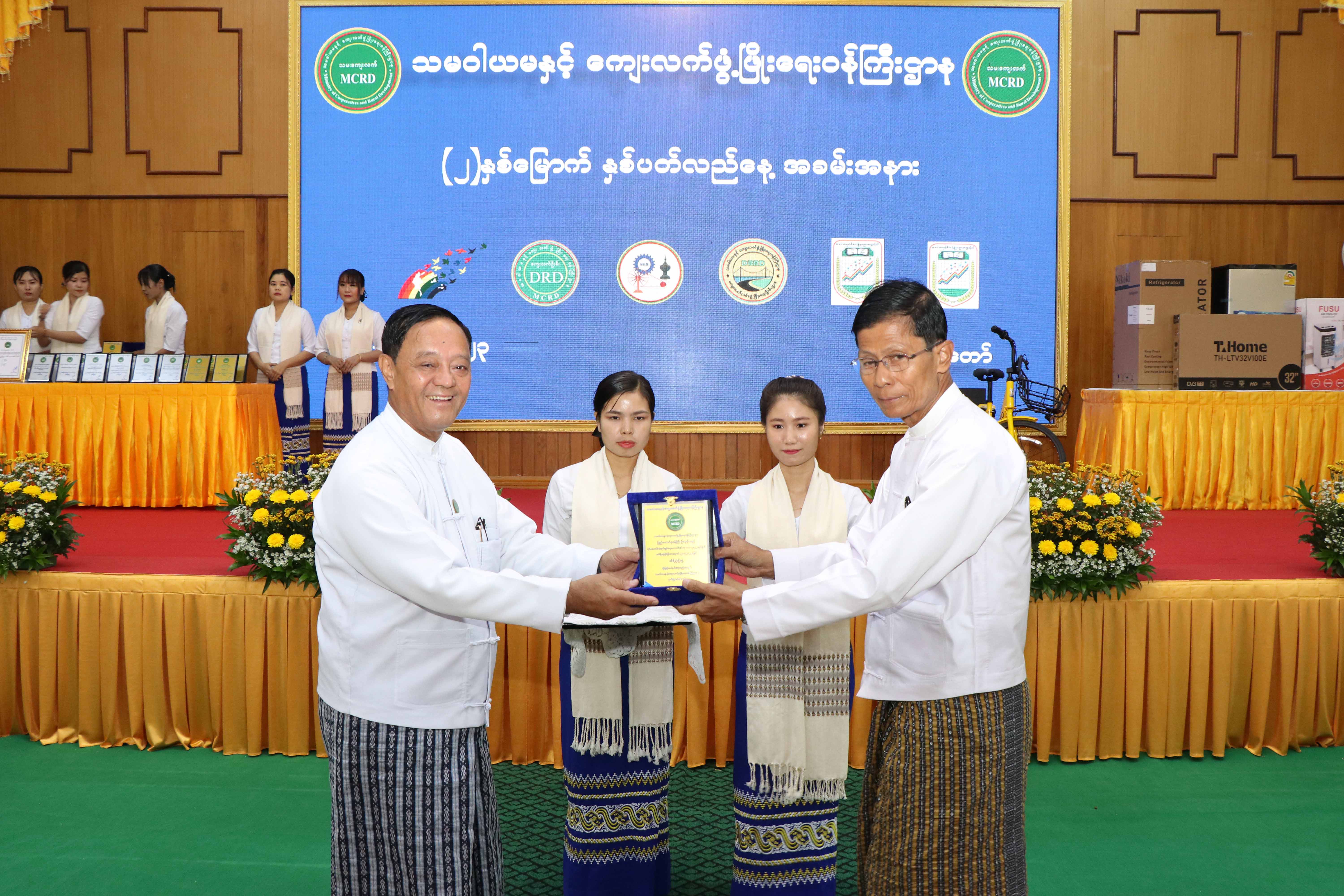 ထို့နောက် ဒုတိယဝန်ကြီးက နိုင်ငံဝန်ထမ်းတက္ကသိုလ်များတွင် ဆုရရှိသူများနှင့် သမဝါယမ အသင်းများ ဖွံ့ဖြိုးတိုးတက်ရေးအတွက် ဦးစီးဆောင်ရွက်နိုင်သည့် စွမ်းဆောင်ရည်အကောင်းဆုံးဆု ရရှိသူများအတွက် ဂုဏ်ပြုဆုတံဆိပ်နှင့် ဂုဏ်ပြုငွေများကိုလည်းကောင်း၊ သမဝါယမနှင့် စီမံခန့်ခွဲမှု ပညာတက္ကသိုလ် (သန်လျင်နှင့်စစ်ကိုင်း)တို့မှ ဝန်ထမ်းများအတွက် ဝတ်စုံများနှင့် လက်ဆောင် ပစ္စည်းများကိုလည်းကောင်း ပေးအပ်သည်။