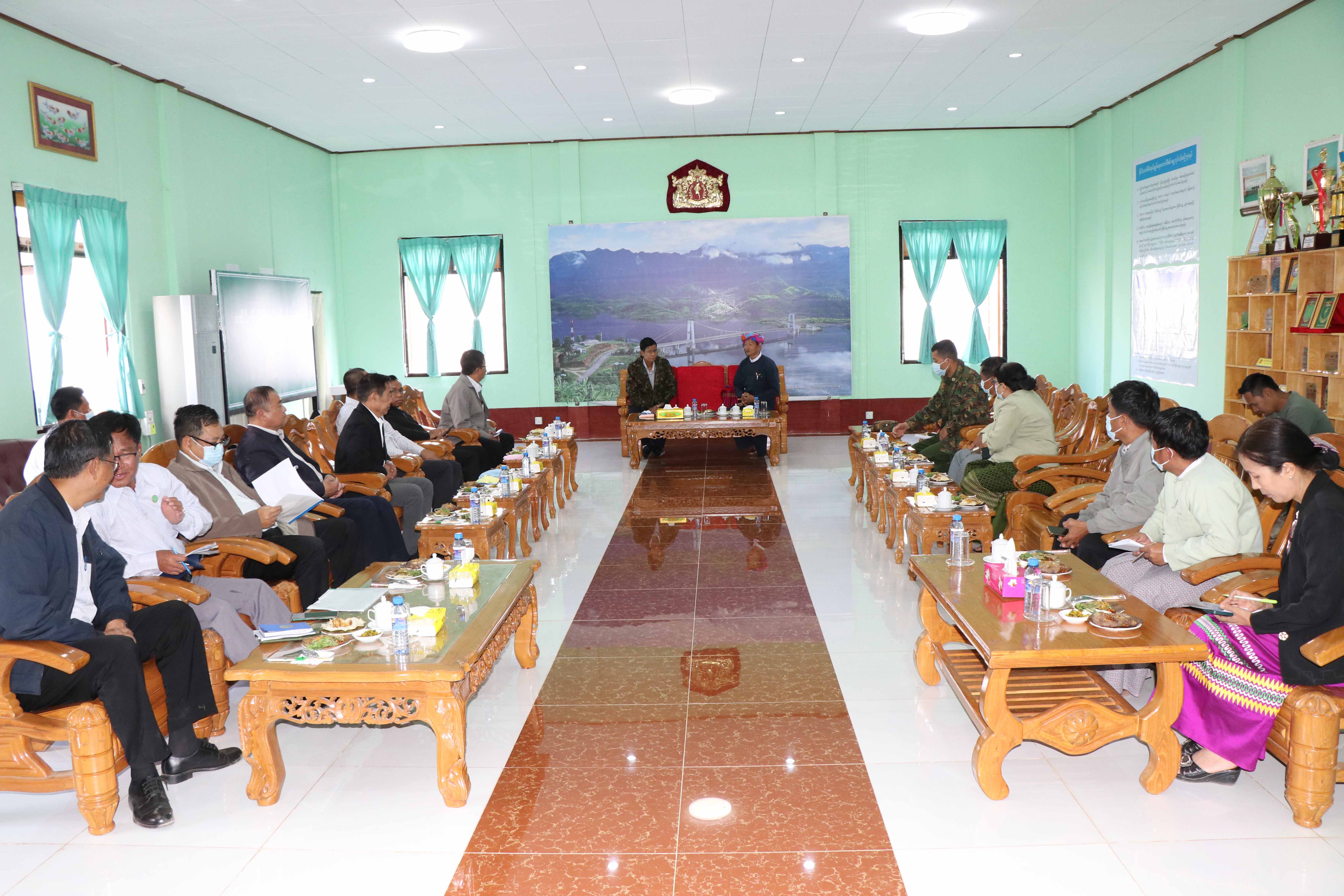 ဒေသအတွင်း အကောင်အထည်ဖော် ဆောင်ရွက်နေသော ဒေသဖွံ့ဖြိုးရေးလုပ်ငန်းများ၊ ရုံးအဆောက်အဦနှင့် ဝန်ထမ်းအိမ်ရာကိစ္စရပ်များနှင့် စပ်လျဉ်း၍ သမဝါယမနှင့် ကျေးလက်ဖွံ့ဖြိုးရေး ဝန်ကြီးဌာန ဒုတိယဝန်ကြီး ဦးမြင့်စိုး သည် ယမန်နေ့ နံနက်ပိုင်းက ပအိုဝ်းကိုယ်ပိုင်အုပ်ချုပ်ခွင့်ရဒေသ ဦးစီးဥက္ကဋ္ဌ ဦးခွန်ရဲထွေးနှင့် ရှမ်းပြည်နယ် (တောင်ပိုင်း) ပအိုဝ်းကိုယ်ပိုင်အုပ်ချုပ်ခွင့်‌ရဒေသ စီမံအုပ်ချုပ်ရေးအဖွဲ့ရုံး၌ တွေ့ဆုံညှိနှိုင်ဆွေးနွေးသည်။