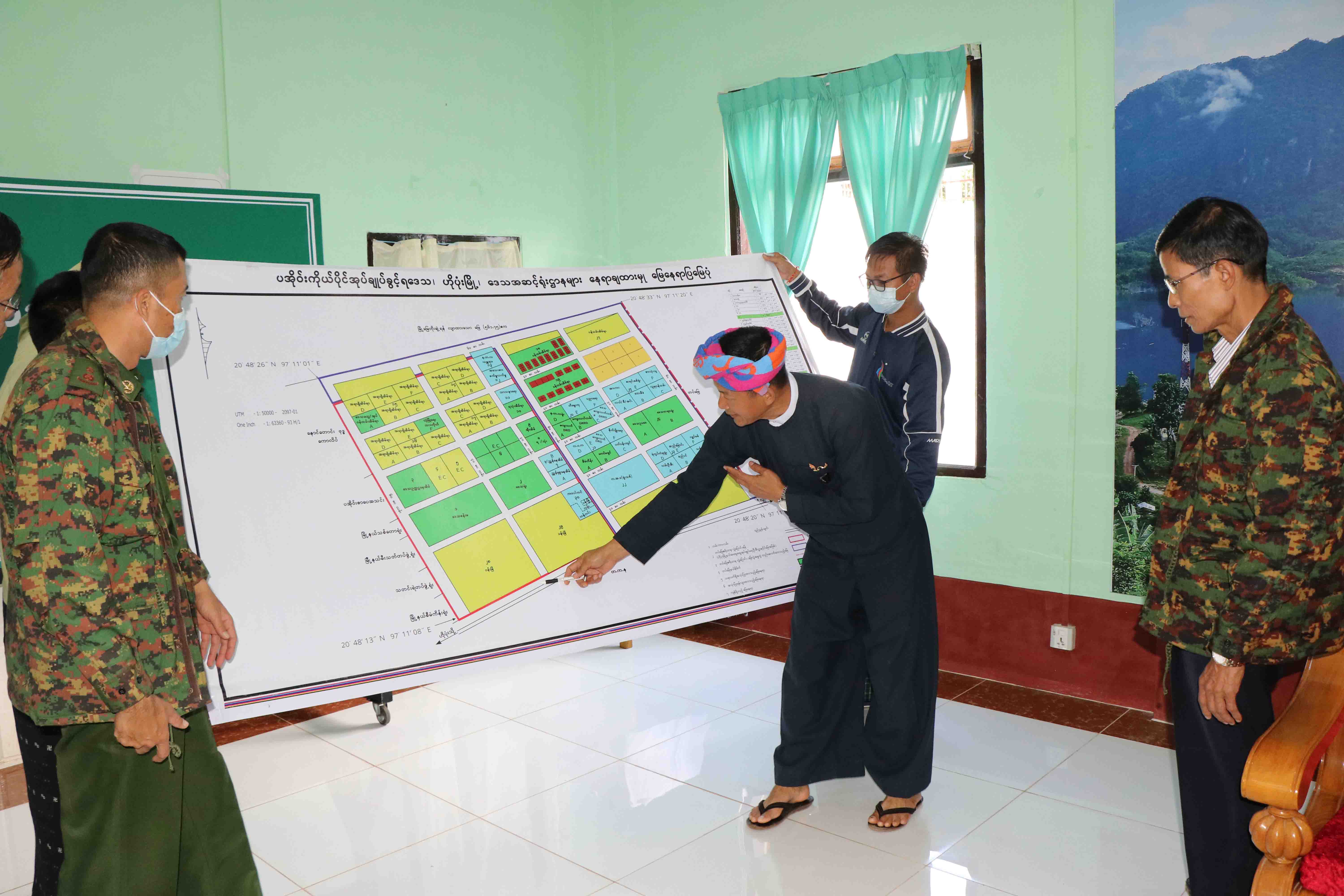 ယင်းနောက် ဒုတိယဝန်ကြီး၊ ဒေသဦးစီးဥက္ကဋ္ဌနှင့်အဖွဲ့သည် ဟိုပုံးမြို့နယ် ကျေးလက်လမ်း ဖွံ့ဖြိုးရေးဦးစီးဌာန၏ ၂၀၂၂-၂၀၂၃ ဘဏ္ဍာရေးနှစ် ခွင့်ပြုရန်ပုံငွေဖြင့် တည်ဆောက်နေသော (၅၈ x ၅၃x၂၄)ပေ RC (၂)ထပ် ရုံးအဆောက်အဦ တည်ဆောက်လုပ်နေမှုနှင့် အသေးစားစက်မှုလက်မှု လုပ်ငန်းဦးစီးဌာန၏ ဟိုပုံးမြို့နယ်ရုံး ဆောက်လုပ်မည့်မြေနေရာတို့ကို ကြည့်ရှုစစ်ဆေးသည်။