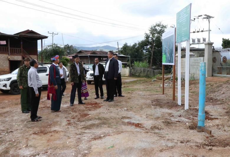 ထို့နောက် ခေတ်မီစံပြကျေးရွာအတွင်း ကျေးလက်ဒေသဖွံ့ဖြိုးတိုးတက်ရေးဦးစီးဌာနမှ ၂၀၂၂-၂၀၂၃ ဘဏ္ဍာနှစ်၊ ပြည်နယ်ရန်ပုံငွေဖြင့် ဆောင်ရွက်ခဲ့သော ကျေးရွာတွင်းလမ်းအမှတ် (၁) ကွန်ကရစ်ခင်းခြင်း ဆောင်ရွက်နေမှုကိုလည်းကောင်း၊ ကျေးရွာရေပေးရေးအတွက် ပေ ၄၀၀ အဝီစိတွင်း တူးဖော်ခြင်းလုပ်ငန်း ဆောင်ရွက်နေမှုကိုလည်းကောင်း၊ Cash For Work စီမံကိန်း ခွင့်ပြုရန်ပုံငွေကျပ် သိန်း (၁၀၀) ဖြင့် ကျေးရွာသူ ကျေးရွာသားများကိုယ်တိုင် ဆောင်ရွက်နေသော သုဿာန်အဝင်လမ်း ဖောက်လုပ်နေမှုကိုလည်းကောင်း ကြည့်ရှုစစ်ဆေးခဲ့ပြီး လုပ်ငန်းလိုအပ်ချက် များအပေါ် ဒုတိယဝန်ကြီးနှင့် ဒေသဦးစီးဥက္ကဋ္ဌတို့က လိုအပ်သည်များ ဖြည့်ဆည်းဆောင်ရွက်ပေးခဲ့ ကြောင်း သိရသည်။