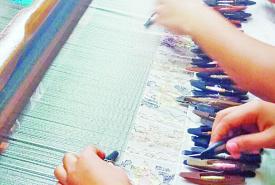 “ဒါကတော့ ဖဲနှတ်ကောက် ကချင်ဒီဇိုင်း အမျိုးသမီးဝတ်လုံချည်ပါ၊ ဓာတုဆိုးဆေးပဲ သုံးထားပါတယ်”
