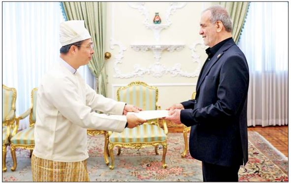 အီရန်အစ္စလာမ်မစ် သမ္မတနိုင်ငံဆိုင်ရာ အထူးအာဏာကုန် လွှဲအပ်ခြင်းခံရသော ပြည်ထောင်စုသမ္မတ မြန်မာနိုင်ငံတော် သံအမတ်ကြီး ဦးဇော်ဦးသည် ၎င်း၏ ခန့်အပ်လွှာကို ၂၀၂၅ ခုနှစ် ဩဂုတ် ၁၀ ရက်တွင် တီဟီရန်မြို့ရှိ သမ္မတနန်းတော်၌ အီရန်အစ္စလာမ်မစ် သမ္မတနိုင်ငံ သမ္မတ မစ္စတာ မာဆော့ပါဇက်ရှ်ကီရမ် ပေးအပ်ခဲ့ပြီးဖြစ်သည်။