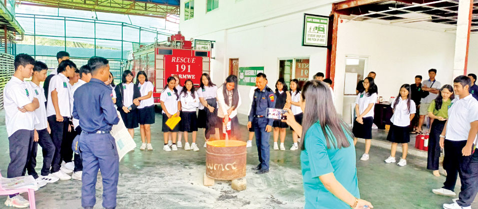 ရန်ကုန်တိုင်းဒေသကြီး သင်္ဃန်းကျွန်းမြို့နယ်၌ မီးဘေးအန္တရာယ် နှင့် သဘာဝဘေးအန္တရာယ်လျော့ပါးရေး အသိပညာပေးအစီအစဉ်ကို Brain Works International School တွင် ယနေ့နံနက်ပိုင်းက ကျင်းပသည်။