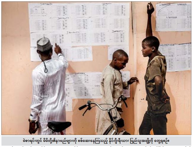 ဗုဒ္ဓဟူးနေ့မှာတော့ သမ္မတမူဟန်မက်ဒူဘူဟာရီကို ထောက်ခံသူတွေဟာ မြို့တော်အဘူဂျာမှာ စုဝေးခဲ့ကြပါတယ်။ သမ္မတဘူဟာရီဟာ လက်ရှိရွေးကောက်ပွဲမှာ အကျဉ်းအကျပ်ကျပ်ထဲ ရောက်နေသူလည်း ဖြစ်ပါတယ်။ များပြားလှစွာသော နိုင်ဂျီးရီးယားပြည်သူတွေဟာ မဲပေးနိုင်ဖို့အတွက် ခရီးဝေးက လာခဲ့ကြရသူတွေဖြစ်ပြီး ရွေးကောက်ပွဲကို ရွှေ့ဆိုင်းလိုက်တယ်ဆိုတဲ့ သတင်းစကားက သူတို့အားလုံးကို စိတ်ပျက်လက်ပျက်ဖြစ်စေတာ အမှန်ပါပဲ။ မစ္စတာဘူဟာရီနဲ့ သူ့ရဲ့အဓိကပြိုင်ဘက်ဖြစ်သူ အသက် ၇၂ နှစ်အရွယ် အာတီကူအဘူဘာကာတို့ နှစ်ဦးစလုံးဟာ သူတို့ကိုယ်တိုင် ရွေးကောက်ပွဲ တစ်ပတ်နောက်ဆုတ်လိုက်ရတဲ့ အခြေအနေအပေါ် ရှုတ်ချကြပေမယ့်သူတို့ကို ထောက်ခံကြသူတွေကိုတော့ စိတ်ရှည်ရှည်ထားဖို့ တိုက်တွန်းခဲ့ကြပါတယ်။ မစ္စတာဘူဟာရီကို ဝေဖန်ကြသူတွေကတော့ ပြီးခဲ့တဲ့သမ္မတသက်တမ်း လေးနှစ်တာကာလအတွင်းမှာ မစ္စတာဘူဟာရီဟာ အရင်တုန်းက သူကတိပေးထားခဲ့သလို တိုင်းပြည်ရဲ့ စီးပွားရေးကို ပြုပြင်ပေးမယ်၊ အကျင့်ပျက်ခြစားမှုတွေကို ကိုင်တွယ်ဖြေရှင်းပေးမယ်၊ လုံခြုံရေးအင်အားကို မြှင့်တင်ပေးမယ် အစရှိတဲ့ကတိတွေကို အောင်မြင်အောင်မလုပ်ဆောင်နိုင်ခဲ့ဘူးလို့ ဝေဖန်ကြပါတယ်။ လုံခြုံရေးအပိုင်းကို ကြည့်မယ်ဆိုရင်လည်း ဘိုကိုဟာရမ် အကြမ်းဖက်သမားတွေရဲ့ တိုက်ခိုက်မှု၊ ရာဇဝတ်ဂိုဏ်းတွေရဲ့တိုက်ခိုက်မှုဟာ မြင့်တက်လာတာကိုလည်း တွေ့ရပါတယ်။ အခုသီတင်းပတ်အတွင်းမှာကိုပဲ ကန်ဒူနာမြို့မှာ ဘာသာရေးဆိုင်ရာ တင်းမာမှုတွေကြား ပေါ်ပေါက်လာတဲ့ ပဋိပက္ခတွေကြောင့် လူပေါင်း ၆၀ ခန် အသတ်ခံခဲ့ရပါတယ်။ လက်ရှိသမ္မတဟာ သူ့ရဲ့နိုင်ငံရေးအရ ရန်သူတွေကို ဦးတည်ပြီး အကျင့်ပျက်ခြစားမှုဆန့်ကျင်ရေး မဲဆွယ်စည်းရုံးမှုတွေပြုလုပ်ခဲ့တယ်လို့ ဝေဖန်သူတွေက ပြောပါတယ်။