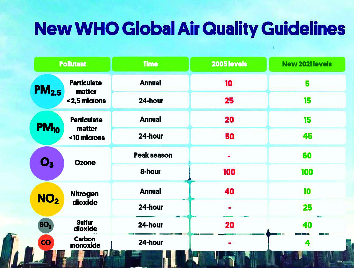 အဆိုပါလေ့လာတွေ့ရှိချက်များအရ လေထုညစ်ညမ်းမှုကြောင့် ထိခိုက်မှုများ နှစ်စဉ်တိုးမြင့် လာသည့်အတွက် ကမ္ဘာ့ကျန်းမာရေးအဖွဲ့အနေဖြင့် ကမ္ဘာတစ်ဝန်းတွင် ဖြစ်ပေါ်နေသော လေထုညစ်ညမ်းမှုကို ဖြေရှင်းဆောင်ရွက်နိုင်ရန်နှင့် ကမ္ဘာ ပေါ်ရှိ လူသားတို့၏ ကျန်းမာရေးအပေါ် ထိခိုက်နေမှုများကို ကြိုတင်ကာကွယ်နိုင်ရန် ရည်ရွယ်ပြီး ကမ္ဘာ့ ကျန်းမာရေးအဖွဲ့က ၂၀၀၅ ခုနှစ်တွင် ထုတ်ပြန်ခဲ့ သည့် Air Quality Guidelines Global Update 2005 အား ပြင်ဆင်ပြီး WHO Global Air Quality Guidelines 2021 ကို ထုတ်ပြန်ခဲ့ပါသည်။ ၂၀၁၉ ခုနှစ်တွင် လေ့လာခဲ့သော ကမ္ဘာတစ်ဝန်းရှိ လေထု အရည်အသွေးအခြေအနေများအား ပြန်လည် ဆန်းစစ်ခဲ့ရာ ၂၀၁၉ ခုနှစ်တွင် ကမ္ဘာ့လူဦးရေ၏ ၉၉ ရာခိုင်နှုန်းခန့်သည် ကမ္ဘာ့ကျန်းမာရေးအဖွဲ့မှ ထုတ်ပြန်ထားသော WHO Global Air Quality Guidelines 2021 ပါ လေထုအရည်အသွေး လမ်းညွှန်ချက်များနှင့် ကိုက်ညီမှုမရှိသော လေထုအရည်အသွေးရှိသည့်နေရာများတွင် နေထိုင်နေ ကြရကြောင်း လေ့လာတွေ့ရှိရပါသည် -