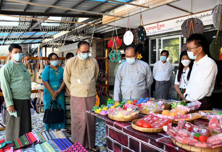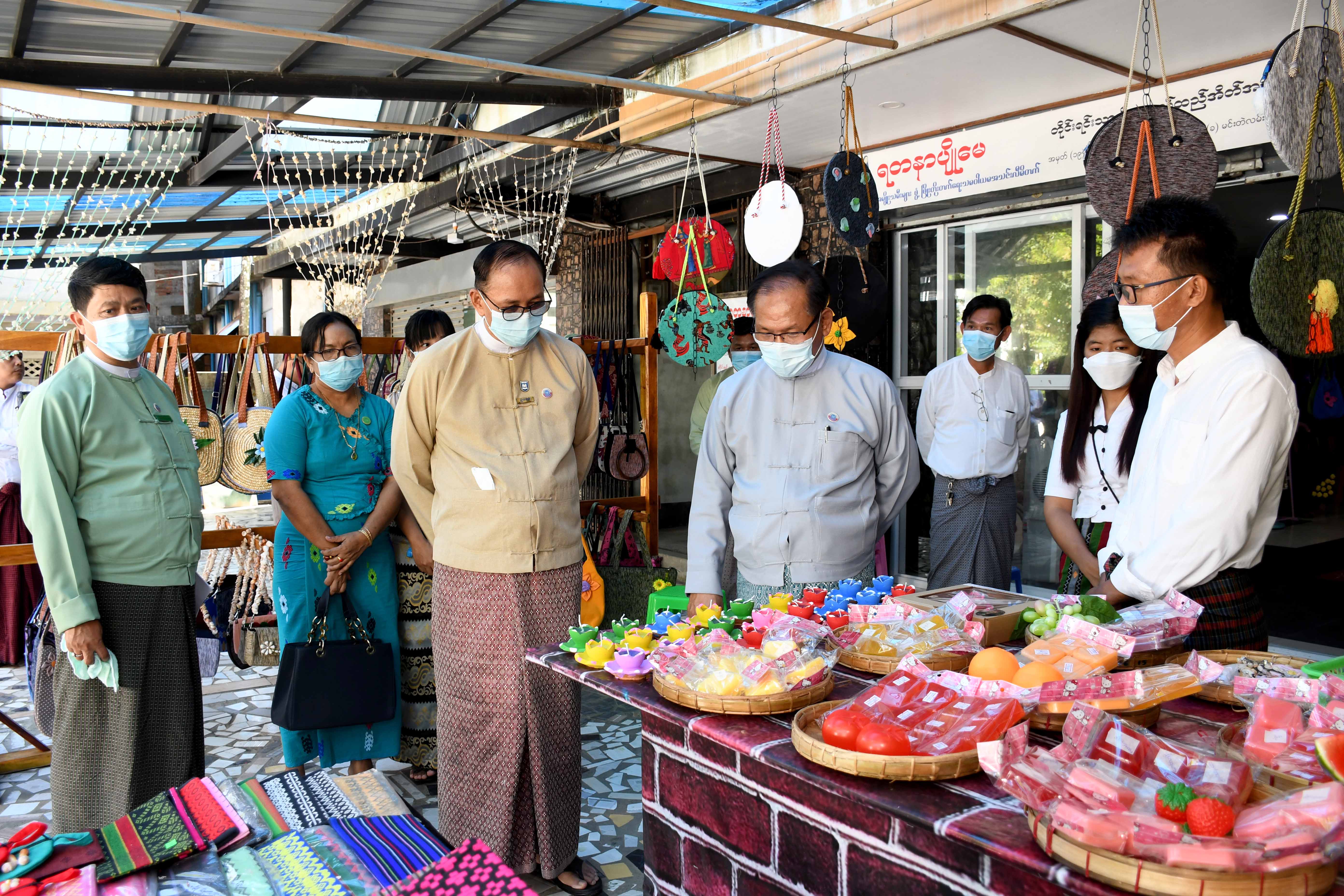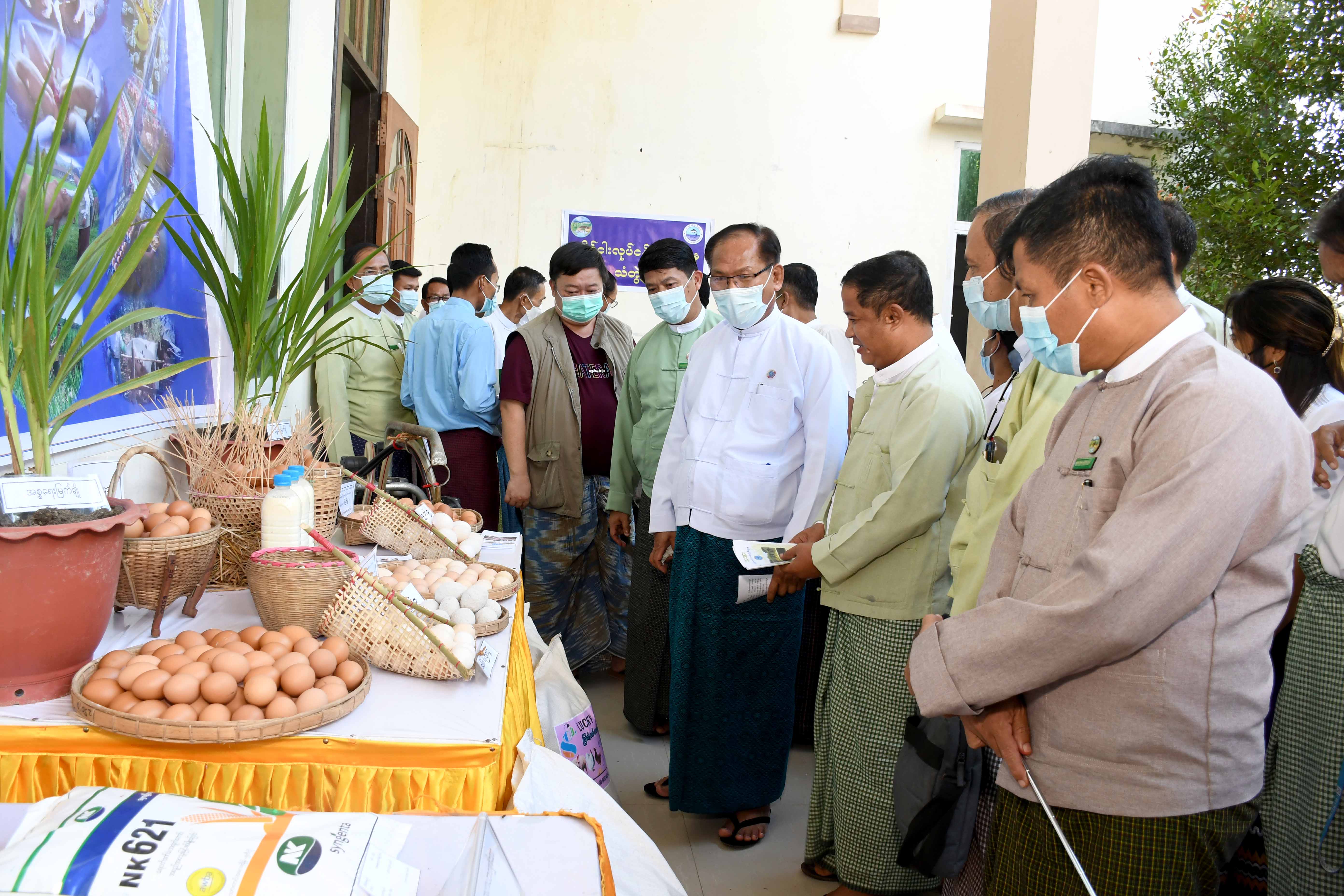 မွန်းလွဲပိုင်းတွင် ပြည်နယ်ဝန်ကြီးချုပ်နှင့်အဖွဲ့သည် သံတွဲမြို့၊ ဒွါရာဝတီခန်းမ၌ ပြုလုပ်သည့် နိုင်ငံ့စီးပွား မြှင့်တင်ရေး ရန်ပုံငွေမှ မတည်ထောက်ပံ့ငွေဖြင့် ဆောင်ရွက်မည့် စိုက်ပျိုးရေး၊ မွေးမြူရေး၊ MSME လုပ်ငန်းများနှင့်ပတ်သက်၍ ဒေသခံပြည်သူများအား ရှင်းလင်းဆွေးနွေးပွဲ အခမ်းအနားသို့ တက်ရောက်ပြီး ခန်းမအတွင်း ခင်းကျင်းပြသထားသော အသေးစား၊ အလတ်စား စီးပွားရေး လုပ်ငန်းရှင်များ၏ ဒေသထုတ်ကုန်များအား ခင်းကျင်းပြသထားမှုကို လှည့်လည် ကြည့်ရှု အားပေးခဲ့ကြကြောင်း သိရသည်။