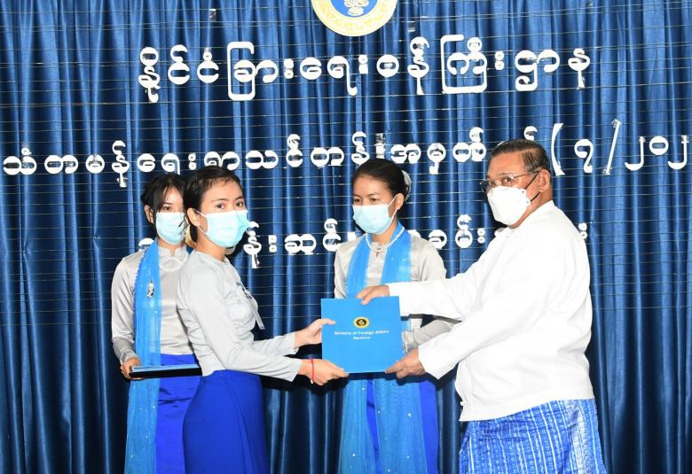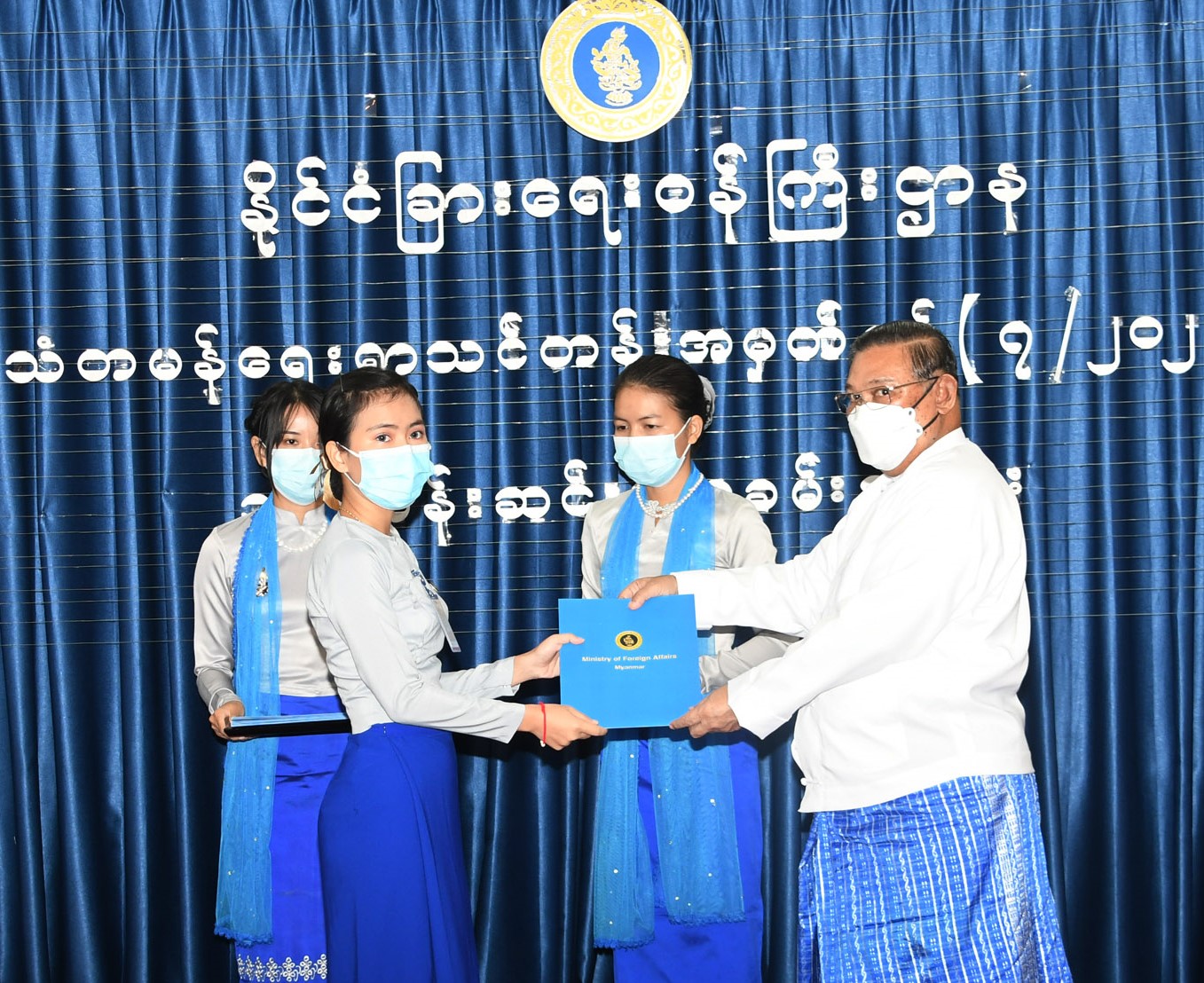 အခမ်းအနားတွင် နိုင်ငံခြားရေးဝန်ကြီးဌာန ပြည်ထောင်စုဝန်ကြီးနှင့် သင်တန်းနည်းပြ ဆရာကြီး ဆရာမကြီးများက သင်တန်းသား သင်တန်းသူများအား သင်တန်းပြီးမြောက်ကြောင်း အောင်လက်မှတ်များနှင့် ထူးချွန်သင်တန်းသား သင်တန်းသူများအား ဂုဏ်ပြုဆုများ ပေးအပ်ချီးမြှင့်သည်။