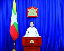Speeches မိန့်ခွန်းများ (၆၈)နှစ်မြောက် ကရင်ပြည်နယ်နေ့အခမ်းအနားသို့ ပေးပို့သည့် သဝဏ်လွှာ မိန့်ခွန်းများ 07/11/23 ပြည်ထောင်စုသမ္မတမြန်မာနိုင်ငံတော် နိုင်ငံတော်စီမံအုပ်ချုပ်ရေးကောင်စီဥက္ကဋ္ဌ၊ နိုင်ငံတော်ဝန်ကြီးချုပ် ဗိုလ်ချုပ်မှူးကြီး သတိုးမဟာသရေစည်သူ၊ သတိုးသီရိသုဓမ္မ မင်းအောင်လှိုင်ထံမှ ကမ္ဘာ့ဆရာများနေ့ အထိမ်းအမှတ်အခမ်းအနားသို့ ပေးပို့သည့် သဝဏ်လွှာ မိန့်ခွန်းများ 05/10/23 ပြည်ထောင်စုသမ္မတမြန်မာနိုင်ငံတော်အစိုးရ နိုင်ငံတော်စီမံအုပ်ချုပ်ရေးကောင်စီဥက္ကဋ္ဌ နိုင်ငံတော်ဝန်ကြီးချုပ် ဗိုလ်ချုပ်မှူးကြီး သတိုးမဟာသရေစည်သူ သတိုးသီရိသုဓမ္မ မင်းအောင်လှိုင်ထံမှ အပြည်ပြည်ဆိုင်ရာအလုပ်သမားနေ့ အခမ်းအနားသို့ ပေးပို့သည့်သဝဏ်လွှာ မိန့်ခွန်းများ 01/05/23 မြန်မာသက္ကရာဇ် ၁၃၈၅ ခုနှစ် နှစ်သစ်ကူးအခါသမယတွင် နိုင်ငံတော်စီမံအုပ်ချုပ်ရေးကောင်စီဥက္ကဋ္ဌ နိုင်ငံတော်ဝန်ကြီးချုပ် ဗိုလ်ချုပ်မှူးကြီး သတိုးမဟာသရေစည်သူ သတိုးသီရိသုဓမ္မ မင်းအောင်လှိုင် ပြောကြားသည့် မြန်မာနှစ်သစ်ကူး နှုတ်ခွန်းဆက်မင်္ဂလာစကား မိန့်ခွန်းများ 18/04/23 ၂၀၂၃ ခုနှစ် မတ်လ ၂၇ ရက်တွင်ကျင်းပသော (၇၈)နှစ်မြောက် တပ်မတော်နေ့ စစ်ရေးပြအခမ်းအနား၌ နိုင်ငံတော်စီမံအုပ်ချုပ်ရေးကောင်စီဥက္ကဋ္ဌ တပ်မတော်ကာကွယ်ရေး ဦးစီးချုပ် ဗိုလ်ချုပ်မှူးကြီး သတိုးမဟာသရေစည်သူ သတိုးသီရိသုဓမ္မ မင်းအောင်လှိုင် ပြောကြားသည့်မိန့်ခွန်း မိန့်ခွန်းများ 28/03/23 (၅၁) ကြိမ်မြောက် မြန်မာနိုင်ငံကျန်းမာရေးဆိုင်ရာ သုတေသနညီလာခံ ဖွင့်ပွဲအခမ်းအနားသို့ နိုင်ငံတော်စီမံအုပ်ချုပ်ရေးကောင်စီဥက္ကဋ္ဌ နိုင်ငံတော်ဝန်ကြီးချုပ် ဗိုလ်ချုပ်မှူးကြီး မင်းအောင်လှိုင် ပေးပို့သည့် ဂုဏ်ပြုမိန့်ခွန်း မိန့်ခွန်းများ 21/02/23 နိုင်ငံတော်စီမံအုပ်ချုပ်ရေးကောင်စီဥက္ကဋ္ဌ၊ နိုင်ငံတော်ဝန်ကြီးချုပ်၊ ဗိုလ်ချုပ်မှူးကြီး သတိုးမဟာသရေစည်သူ သတိုးသီရိသုဓမ္မ မင်းအောင်လှိုင်ထံမှ (၇၅)နှစ်မြောက် စိန်ရတု ချင်းအမျိုးသားနေ့အခမ်းအနားသို့ ပေးပို့သည့် သဝဏ်လွှာ မိန့်ခွန်းများ 20/02/23 ပြည်ထောင်စုသမ္မတမြန်မာနိုင်ငံတော်အစိုးရ နိုင်ငံတော်စီမံအုပ်ချုပ်ရေးကောင်စီဥက္ကဋ္ဌ နိုင်ငံတော်ဝန်ကြီးချုပ် ဗိုလ်ချုပ်မှူးကြီး သတိုးမဟာသရေစည်သူ သတိုးသီရိသုဓမ္မ မင်းအောင်လှိုင်ထံမှ (၇၆) နှစ်မြောက် ရှမ်းပြည်နယ်နေ့ အခမ်းအနားသို့ ပေးပို့သည့် သဝဏ်လွှာ မိန့်ခွန်းများ 07/02/23 နိုင်ငံတော်စီမံအုပ်ချုပ်ရေးကောင်စီဥက္ကဋ္ဌ နိုင်ငံတော်ဝန်ကြီးချုပ် ဗိုလ်ချုပ်မှူးကြီး သတိုးမဟာ သရေစည်သူ သတိုးသီရိသုဓမ္မ မင်းအောင်လှိုင်၏ ၂၀၂၃ ခုနှစ် နှစ်သစ်ကူးနှုတ်ခွန်းဆက်စကား မိန့်ခွန်းများ 01/01/23 ပြောင်းလဲတိုးတက်လာသည့် ဆေး