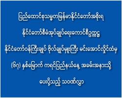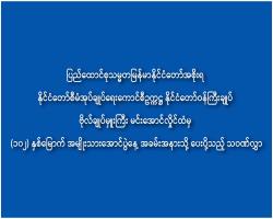 Speeches မိန့်ခွန်းများ နိုင်ငံတော်စီမံအုပ်ချုပ်ရေးကောင်စီဥက္ကဋ္ဌ နိုင်ငံတော်ဝန်ကြီးချုပ် ဗိုလ်ချုပ်မှူးကြီး မင်းအောင်လှိုင် မြန်မာ့မီးရထား စက်ခေါင်းစက်ရုံ (အင်းစိန်)မှ ဝန်ထမ်းများအား တွေ့ဆုံအမှာစကားပြောကြား မိန့်ခွန်းများ 22/12/22 ပြည်ထောင်စုသမ္မတမြန်မာနိုင်ငံတော်အစိုးရ နိုင်ငံတော်စီမံအုပ်ချုပ်ရေးကောင်စီဥက္ကဋ္ဌ နိုင်ငံတော်ဝန်ကြီးချုပ် ဗိုလ်ချုပ်မှူးကြီး မဟာသရေစည်သူ မင်းအောင်လှိုင်ထံမှ ကရင်အမျိုးသားနှစ်သစ်ကူးနေ့အခမ်းအနားသို့ ပေးပို့သည့် သဝဏ်လွှာ မိန့်ခွန်းများ 22/12/22 ပြည်ထောင်စုသမ္မတမြန်မာနိုင်ငံတော်အစိုးရ နိုင်ငံတော်စီမံအုပ်ချုပ်ရေးကောင်စီဥက္ကဋ္ဌ နိုင်ငံတော်ဝန်ကြီးချုပ် ဗိုလ်ချုပ်မှူးကြီး မင်းအောင်လှိုင်ထံမှ (၁၀၂) နှစ်မြောက် အမျိုးသားအောင်ပွဲနေ့ အခမ်းအနားသို့ ပေးပို့သည့် သဝဏ်လွှာ မိန့်ခွန်းများ 17/11/22 ပြည်ထောင်စုသမ္မတမြန်မာနိုင်ငံတော်အစိုးရ နိုင်ငံတော်စီမံအုပ်ချုပ်ရေးကောင်စီဥက္ကဋ္ဌ နိုင်ငံတော်ဝန်ကြီးချုပ် ဗိုလ်ချုပ်မှူးကြီး မင်းအောင်လှိုင်ထံမှ (၆၇) နှစ်မြောက် ကရင်ပြည်နယ်နေ့ အခမ်းအနားသို့ ပေးပို့သည့် သဝဏ်လွှာ မိန့်ခွန်းများ 07/11/22 ပြည်တွင်းစားနပ်ရိက္ခာဖူလုံအောင် ကြိုးစားအားထုတ်ခဲ့ကြသည့် တောင်သူလယ်သမားကြီးများ အားလုံးကို ကျေးဇူးတင်ရှိ၊ နိုင်ငံ၏ “စားနပ်ရိက္ခာလူစွမ်းကောင်းများ” အဖြစ် ကမ္ဘာ့စားနပ်ရိက္ခာနေ့တွင် မှတ်တမ်းတင်ဂုဏ်ပြု မိန့်ခွန်းများ 17/10/22 နိုင်ငံတော်စီမံအုပ်ချုပ်ရေးကောင်စီဥက္ကဋ္ဌ နိုင်ငံတော်ဝန်ကြီးချုပ် အမျိုးသားစည်းလုံးညီညွတ်ရေးနှင့် ငြိမ်းချမ်းရေးဖော်ဆောင်မှု ဗဟိုကော်မတီဥက္ကဋ္ဌ တပ်မတော်ကာကွယ်ရေးဦးစီးချုပ် ဗိုလ်ချုပ်မှူးကြီး မင်းအောင်လှိုင် မိန့်ခွန်းများ 16/10/22 နိုင်ငံတော် ဝန်ကြီးချုပ် ဗိုလ်ချုပ်မှူးကြီးမင်းအောင်လှိုင် စာပေဗိမာန် (၇၅)နှစ်ပြည့် စိန်ရတုအထိမ်းအမှတ်အခမ်းအနားသို့ ပေးပို့သည့်မိန့်ခွန်း မိန့်ခွန်းများ 27/08/22 ပြည်ထောင်စုသမ္မတမြန်မာနိုင်ငံတော် နိုင်ငံတော်စီမံအုပ်ချုပ်ရေးကောင်စီ ဥက္ကဋ္ဌ နိုင်ငံတော်ဝန်ကြီးချုပ် ဗိုလ်ချုပ်မှူးကြီး မင်းအောင်လှိုင်ထံမှ (၅၅)နှစ်မြောက် အာဆီယံ နှစ်ပတ်လည်နေ့တွင် ပြည်သူသို့ ပေးပို့သည့် သဝဏ်လွှာ မိန့်ခွန်းများ 08/08/22 နိုင်ငံတော်စီမံအုပ်ချုပ်ရေးကောင်စီ၏ ၁ နှစ်နှင့် ၆ လ(၁၈ လ)ပြည့် နိုင်ငံတော်တာဝန် ထမ်းဆောင်ခဲ့မှုနှင့်ပတ်သက်၍ နိုင်ငံတော်စီမံအုပ်ချုပ်ရေးကောင်စီဥက္ကဋ္ဌ နိုင်ငံတော်ဝန်ကြီးချုပ် ဗိုလ်ချုပ်မှူးကြီး မင်းအောင်လှိုင် ပြောကြားသည့် မိန့်ခွန်း မိန့်ခွန်းများ 02/08/22 မြန်မာအမျိုးသမီးများနေ့ အထိမ်းအမှတ်အခမ်းအနားတွင် နိုင်ငံတော်စီမံအုပ်ချုပ်ရေးက