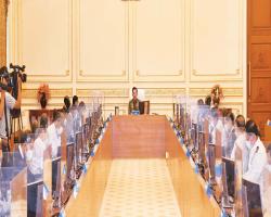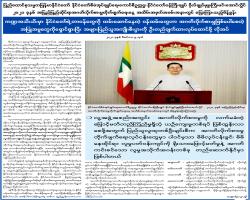 Speeches မိန့်ခွန်းများ ပြည်ထောင်စုသမ္မတမြန်မာနိုင်ငံတော် နိုင်ငံတော်စီမံအုပ်ချုပ်ရေးကောင်စီ ဥက္ကဋ္ဌ နိုင်ငံတော်ဝန်ကြီးချုပ် ဗိုလ်ချုပ်မှူးကြီး မင်းအောင်လှိုင်ထံမှ ၂၀၂၂ ခုနှစ်၊ (၇၅) နှစ်မြောက် စိန်ရတုပြည်ထောင်စုနေ့ အခမ်းအနားသို့ ပေးပို့သည့် သဝဏ်လွှာ မိန့်ခွန်းများ 12/02/22 (၇၄)နှစ်မြောက် လွတ်လပ်ရေးနေ့အခမ်းအနားသို့ နိုင်ငံတော်စီမံအုပ်ချုပ်ရေးကောင်စီဥက္ကဋ္ဌ၊ နိုင်ငံတော်ဝန်ကြီးချုပ် ဗိုလ်ချုပ်မှူးကြီး မင်းအောင်လှိုင် ပေးပို့သည့်သဝဏ်လွှာ မိန့်ခွန်းများ 04/01/22 ပြည်ထောင်စုသမ္မတမြန်မာနိုင်ငံတော် နိုင်ငံတော်စီမံအုပ်ချုပ်ရေးကောင်စီဥက္ကဋ္ဌ၊ နိုင်ငံတော်ဝန်ကြီးချုပ် ဗိုလ်ချုပ်မှူးကြီးမင်းအောင်လှိုင် ၂၀၂၁ ခုနှစ် အပြည်ပြည်ဆိုင်ရာအဂတိလိုက်စားမှုတိုက်ဖျက်ရေးနေ့ အထိမ်းအမှတ်အခမ်းအနားတွင် ပြောကြားသည့်မိန့်ခွန်း မိန့်ခွန်းများ 10/12/21 ပြည်ထောင်စုသမ္မမြန်မာနိုင်ငံတော်အစိုးရ နိုင်ငံတော်စီမံအုပ်ချုပ်ရေးကောင်စီ၏ (၉) လပြည့် နိုင်ငံတော်တာဝန် ထမ်းဆောင်ခဲ့မှုနှင့် ပတ်သက်၍ နိုင်ငံတော်စီမံအုပ်ချုပ်ရေးကောင်စီ ဥက္ကဋ္ဌ နိုင်ငံတော်ဝန်ကြီးချုပ် ဗိုလ်ချုပ်မှူးကြီး မင်းအောင်လှိုင်ပြောကြားသည့်မိန့်ခွန်း မိန့်ခွန်းများ 02/11/21 ပြည်ထောင်စုသမ္မတ မြန်မာနိုင်ငံတော် နိုင်ငံတော်စီမံအုပ်ချုပ်ရေးကောင်စီဥက္ကဋ္ဌ၊ နိုင်ငံတော်ဝန်ကြီးချုပ် ဗိုလ်ချုပ်မှူးကြီး မင်းအောင်လှိုင် ကမ္ဘာ့ခရီးသွားလုပ်ငန်းနေ့ ၂၀၂၁ အထိမ်းအမှတ်အခမ်းအနားသို့ ပေးပို့သည့်အမှာစကား မိန့်ခွန်းများ 28/09/21 နိုင်ငံတော်စီမံအုပ်ချုပ်ရေးကောင်စီ၏ (၆) လပြည့် နိုင်ငံတော်တာဝန် ထမ်းဆောင်ခဲ့သည့် ၂၀၂၁ ခုနှစ်၊ ဩဂုတ်လ ၁ ရက်နေ့တွင် နိုင်ငံတော် စီမံအုပ်ချုပ်ရေးကောင်စီဉက္ကဋ္ဌ ဗိုလ်ချုပ်မှူးကြီး မင်းအောင်လှိုင် ပြောကြားသည့်မိန့်ခွန်း မိန့်ခွန်းများ 02/08/21 နိုင်ငံတော်စီမံအုပ်ချုပ်ရေးကောင်စီ ဥက္ကဋ္ဌ၊ တပ်မတော်ကာကွယ်ရေးဦးစီးချုပ် ဗိုလ်ချုပ်မှူးကြီး မင်းအောင်လှိုင် မော်လမြိုင်တပ်နယ်မှ အရာရှိ၊ စစ်သည်၊ မိသားစုများအား တွေ့ဆုံရာတွင် ပြောကြားသည့် အမှာစကား မိန့်ခွန်းများ 16/06/21 နိုင်ငံတော်စီမံအုပ်ချုပ်ရေးကောင်စီဥက္ကဋ္ဌ၊ တပ်မတော်ကာကွယ်ရေးဦးစီးချုပ် ဗိုလ်ချုပ်မှူးကြီး မင်းအောင်လှိုင် နိုင်ငံတော်စီမံအုပ်ချုပ်ရေးကောင်စီ စီမံခန့်ခွဲရေးကော်မတီအစည်းအဝေး (၇/၂၀၂၁)တွင် ပြောကြားသည့် အမှာစကား မိန့်ခွန်းများ 16/06/21 နိုင်ငံတော်စီမံအုပ်ချုပ်ရေးကောင်စီဥက္ကဋ္ဌ၊ တပ်မတော်ကာကွယ်ရေးဦးစီးချုပ် ဗိုလ်ချုပ်မှူးကြီး မင်းအောင်လှိုင် နိုင်ငံတော်စီမံအုပ်ချုပ်ရေးကောင်စီ အစည်းအဝေး (၁၂/၂၀၂၁)တွင် ပြောကြားသည့် အမှာစကား မိန့်ခွန်းများ