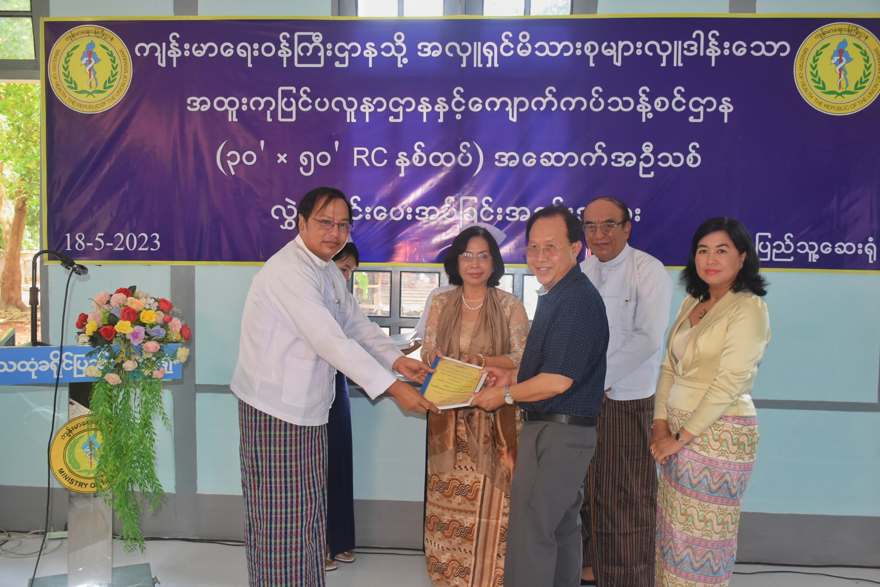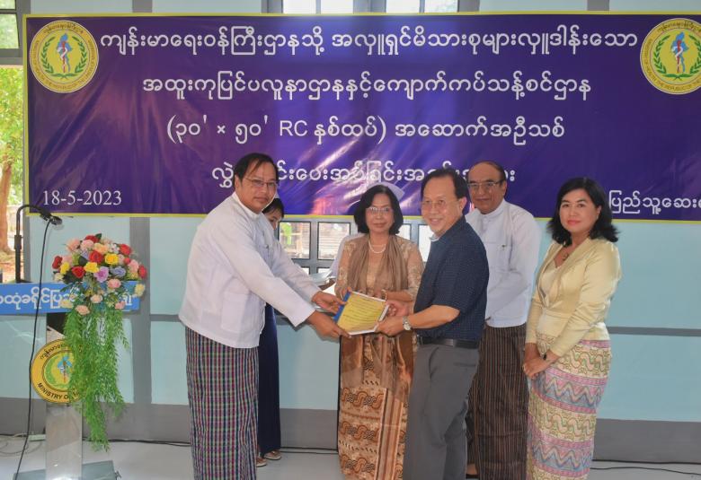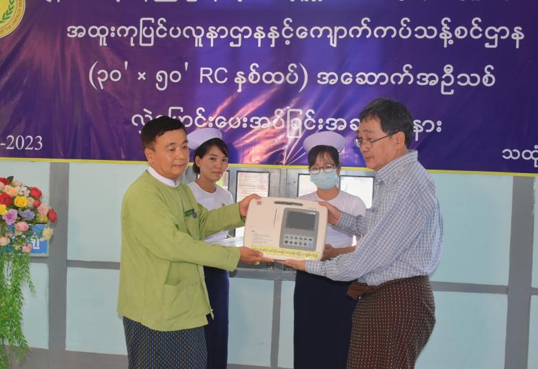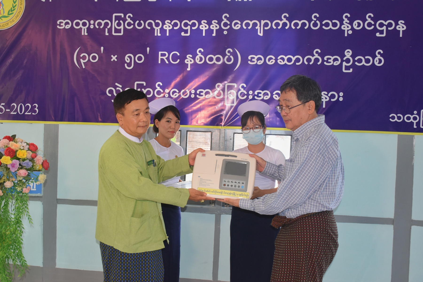 ဦးစွာ အလှူရှင်တစ်ဦးဖြစ်သူ ဒေါက်တာခင်မိုးမိုးက အဆောက်အဦသစ် ဆောက်လုပ်လှူဒါန်းပေးရခြင်းနှင့် စပ်လျဉ်း၍ ရှင်းလင်းပြောကြားပြီး အလှူရှင် ဉာဏ်ဝေယံမိသားစုတို့က ငွေကျပ် သိန်းပေါင်း ၁၅၆၉ သိန်းကျော်တန်ဖိုးရှိ အထူးကုပြင်ပလူနာဌာနနှင့် ကျောက်ကပ်သန့်စင်ဌာန အလျားပေ ၃၀၊ အနံပေ ၅၀ RC နှစ်ထပ် ပင်မအဆောက်အဦအား ကျန်းမာရေးဝန်ကြီးဌာနသို့ လွှဲပြောင်းပေးအပ်ရာ ပြည်နယ် ပြည်သူ့ကျန်းမာရေးနှင့် ကုသရေးဦးစီးဌာနမှူး ဒေါက်တာနန္ဒဝင်းက လက်ခံရယူပြီး ဂုဏ်ပြုမှတ်တမ်းလွှာ ပြန်လည်ပေးအပ်ခဲ့သည်။