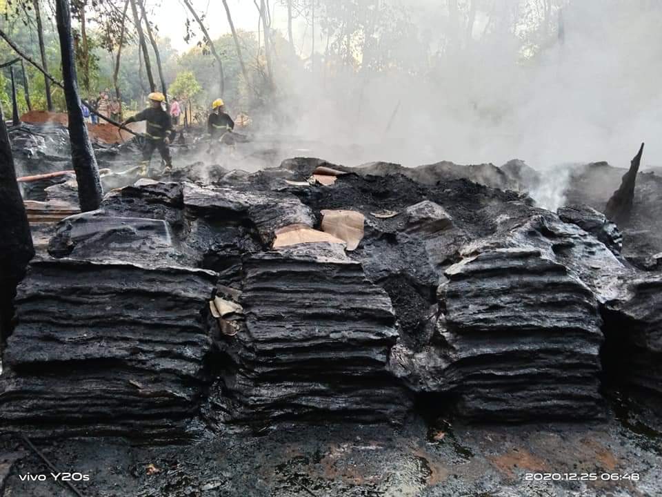 မီးလောင်မှုကြောင့် ရော်ဘာမှိုင်းခံရုံ တစ်ရုံ၊ လူနေတဲ သုံးလုံး၊ ရော်ဘာပြား ပေါင် ၂၀၀၀ ခန့် ပျက်စီးဆုံးရှုံးခဲ့ကြောင်း သိရသည်။