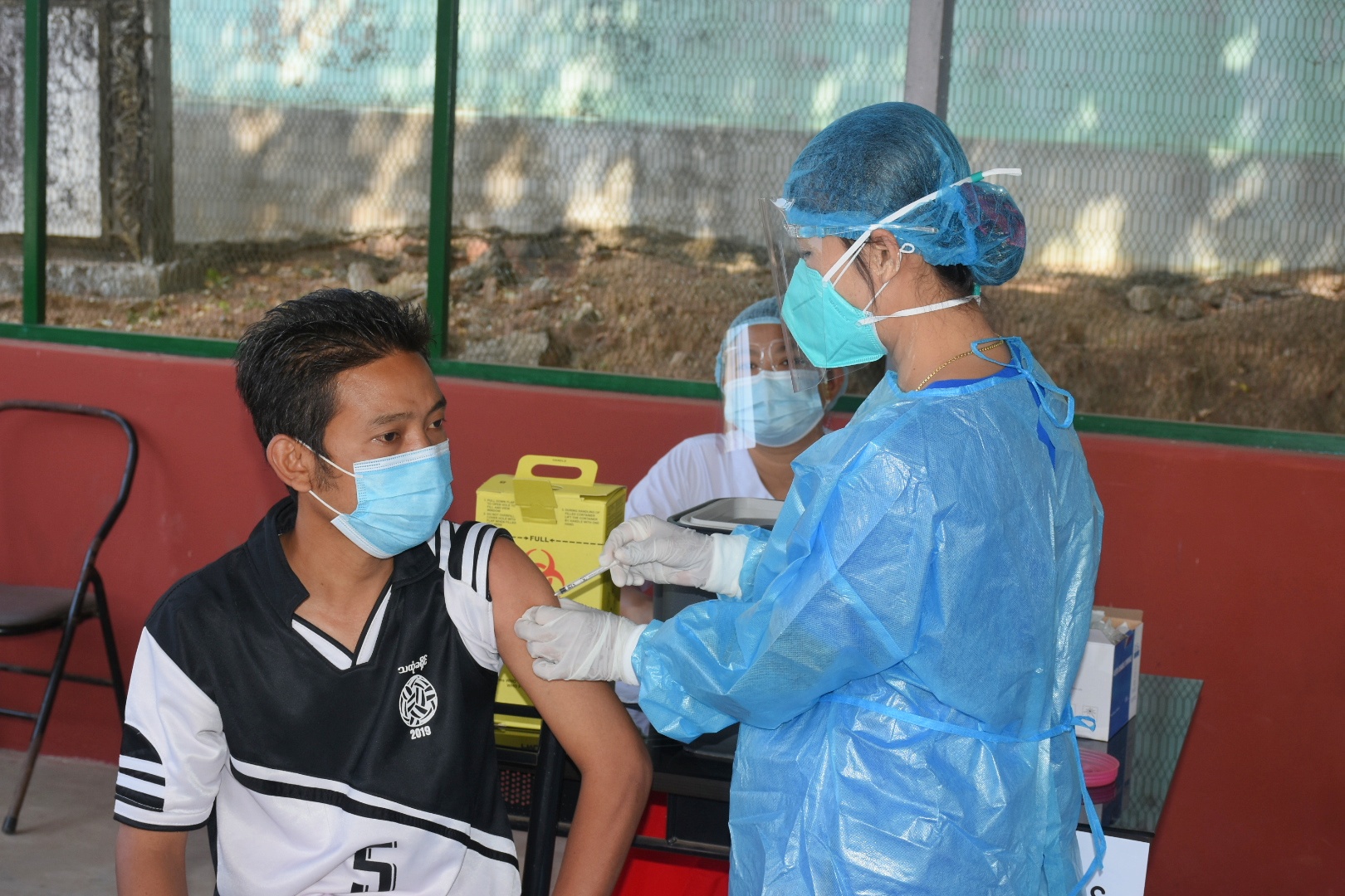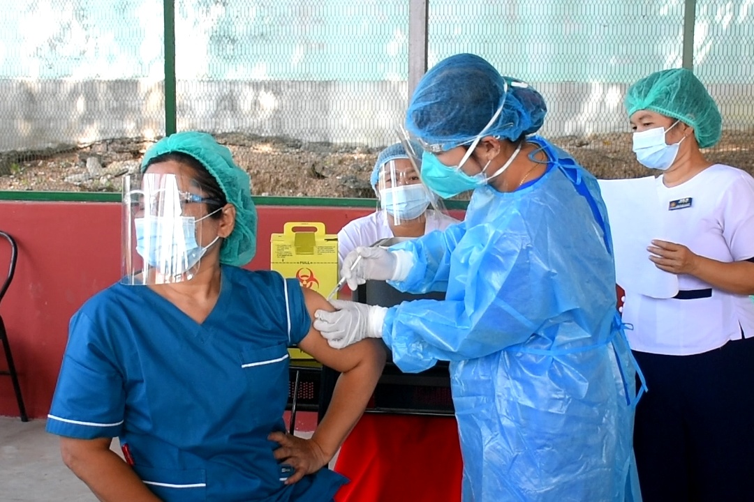 မွန်ပြည်နယ် သထုံမြို့နယ်တွင် ကျန်းမာရေးနှင့်အားကစားဝန်ကြီးဌာန လက်အောက်ရှိဝန်ထမ်းများအား ကိုဗစ်-၁၉ ရောဂါကာကွယ်ဆေး(ပထမအကြိမ်) ထိုးနှံပေးခြင်းကို ယနေ့ နံနက် ၉ နာရီခန့်က သထုံခရိုင် ပြည်သူ့ဆေးရုံကြီးရှိ လူနာစောင့်များနားနေဆောင်၌ ပြုလုပ်ခဲ့သည်။