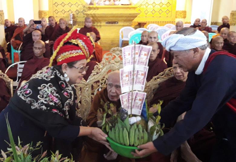 ယင်းနောက် စေတီတော် ရင်ပြင်တော်ပေါ်၌ တိုင်းရင်းသားများစုပေါင်းကာ သံဃာတော်နှင့် သီလရှင်များအား ဆွမ်းဆန်စိမ်းနှင့် လှူဖွယ်များကို လောင်းလှူကြပြီး မွန်ပြည်နယ်အစိုးရအဖွဲ့ဝင် ပအိုဝ်းတိုင်းရင်းသား ရေးရာ ဝန်ကြီး ဒေါ်နန်းစံဝင့်ခိုင်နှင့် တာဝန်ရှိသူတို့က ပအိုဝ်းစာပေနှင့် ယဉ်ကျေးမှု အဖွဲ့များနှင့် ပအိုဝ်း တိုင်းရင်းသားအဖွဲ့အစည်းများအား ပအိုဝ်းသမိုင်းဆိုင်ရာ စာအုပ်စာတမ်း၁၂ စုံကို ပေးအပ်လှူဒါန်းကာ ပအိုဝ်းသမိုင်းစာပေပညာရှင် ဦးခွန်ထွန်းရှိန်က လှူဒါန်းရခြင်းနှင့် စပ်လျဉ်း၍ ရှင်းလင်းပြောကြားသည်။