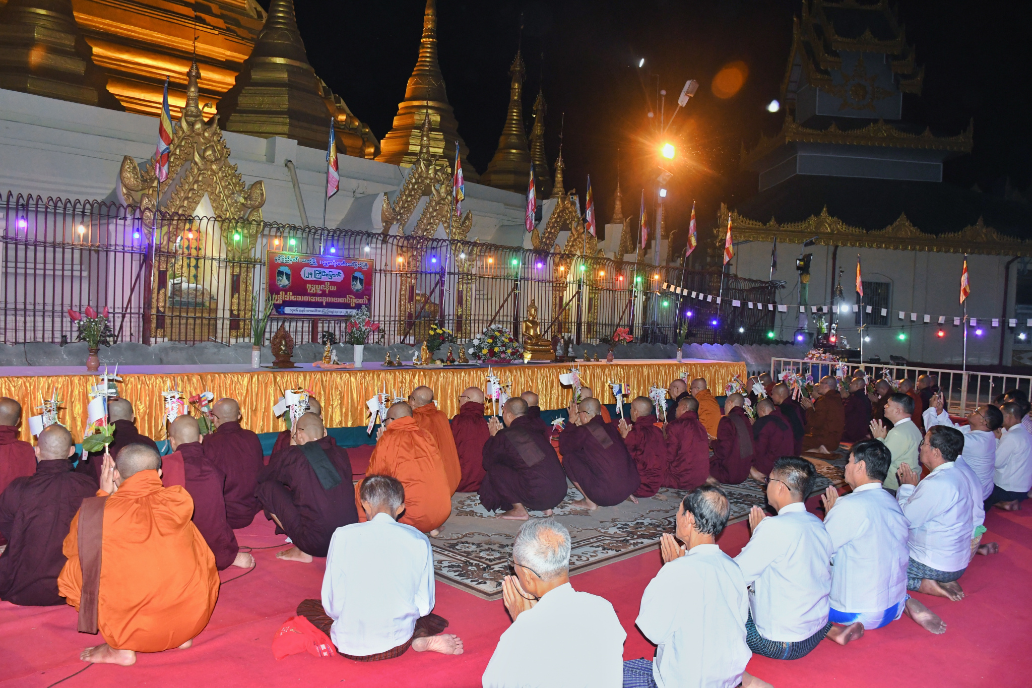 ထို့နောက် ခရိုင်နှင့်မြို့နယ် ဌာနဆိုင်ရာများ၊ စေတီတော်ဘဏ္ဍာတော်ထိန်းဂေါပကအဖွဲ့နှင့် အလှူရှင်များစုပေါင်းကာ ကြွရောက်လာကြသည့် ကျောင်းတိုက်အသီးသီးမှ ဆရာတော်၊ သံဃာတော် အရှင်သူမြတ်များအား ဆွမ်းဆန်စိမ်းနှင့် လှူဖွယ်ဝတ္ထုပစ္စည်းများ တပျော်တပါးလောင်းလှူခဲ့ကြကြောင်း သိရသည်။