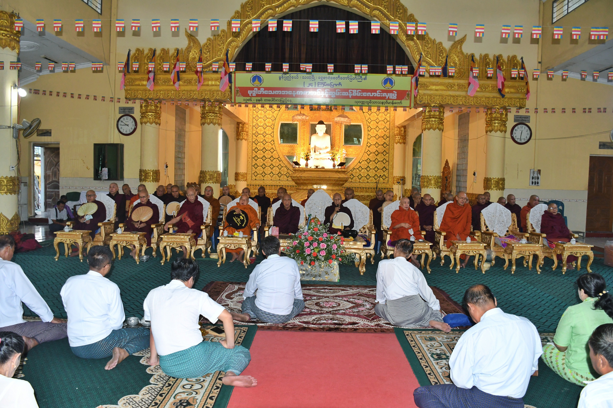 ဆက်လက်၍ ဆရာတော်သံဃာတော်အရှင်သူမြတ်များကရွတ်ပွားသရဇ္ဈာယ် ချီးမြှင့်တော်မူသော မေတ္တာသုတ် အစရှိသည့် ပရိတ်တရားတော်များ နာယူကြည်ညိုကြကာ အလှူရှင်များက ဆရာတော်ကြီးများထံ လှူဖွယ်ဝတ္ထုပစ္စည်းများ ဆက်ကပ်လှူဒါန်းကြပြီး လှူဒါန်းမှုအစုစုတို့အတွက် နိုင်ငံတော်သံဃာ့မဟာနာယကအဖွဲ့ဝင် သဒ္ဓမ္မဇောတိကာရာမကျောင်းတိုက် ပဓာနနာယကဆရာတော် ပိဋကတ္တရပါရဂူ  အဂ္ဂမဟာပဏ္ဍိတ ဘဒ္ဒန္တ သုမနာဘိဝံသထံမှ ရေစက်ချအနုမောဒနာတရား နာယူခဲ့ကြသည်။