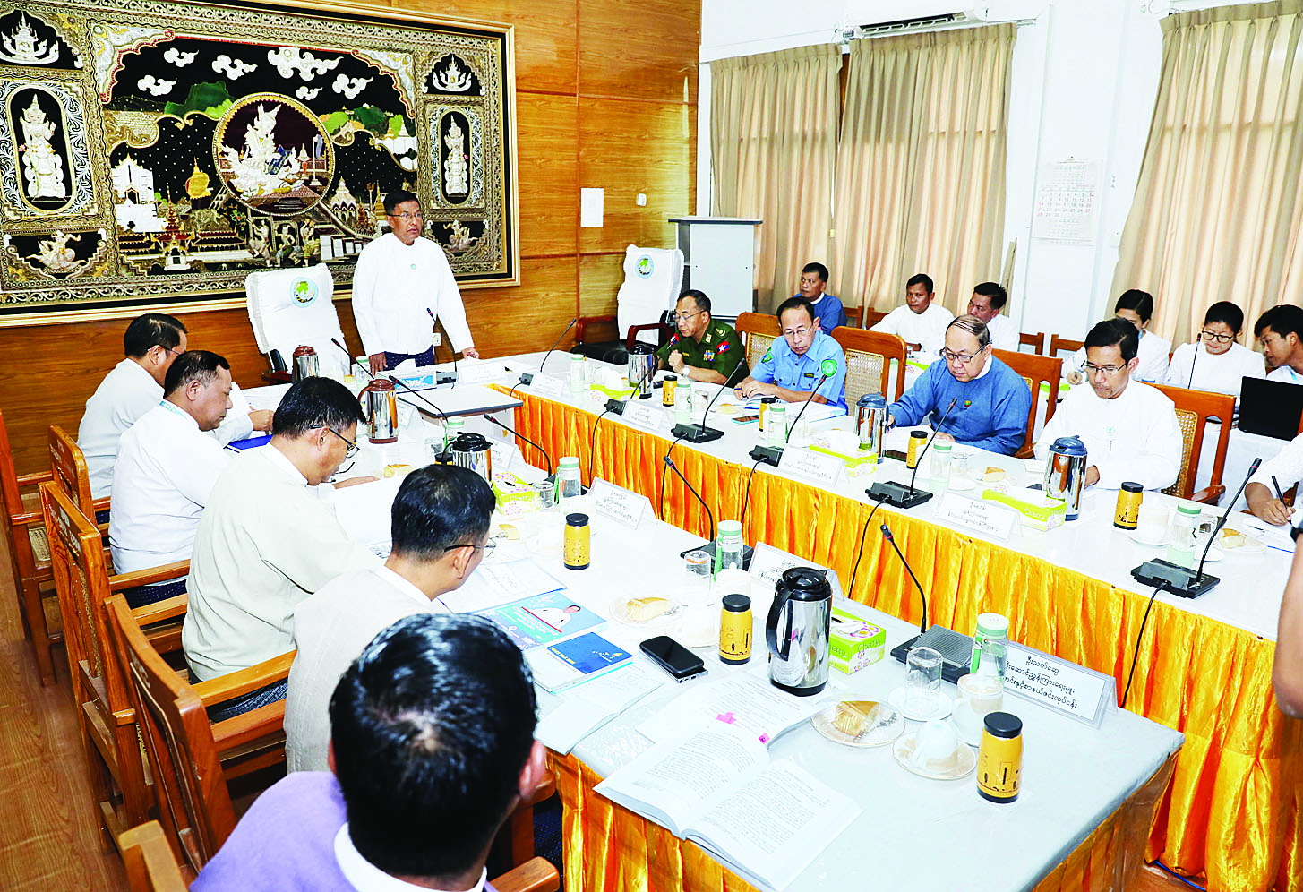 အစည်းအဝေးသို့ သတင်းပြန်ကြား‌ရေး၊ မှတ်တမ်းဆိုင်ရာနှင့် ပြခန်းခင်းကျင်းပြသရေးလုပ်ငန်းကော်မတီဥက္ကဋ္ဌ ပြန်ကြားရေးဝန်ကြီးဌာန ဒုတိယဝန်ကြီး ဦးရဲတင့်၊ လုပ်ငန်းကော်မတီအတွင်းရေးမှူးနှင့် အဖွဲ့ဝင်များ တက်ရောက်ကြသည်။
