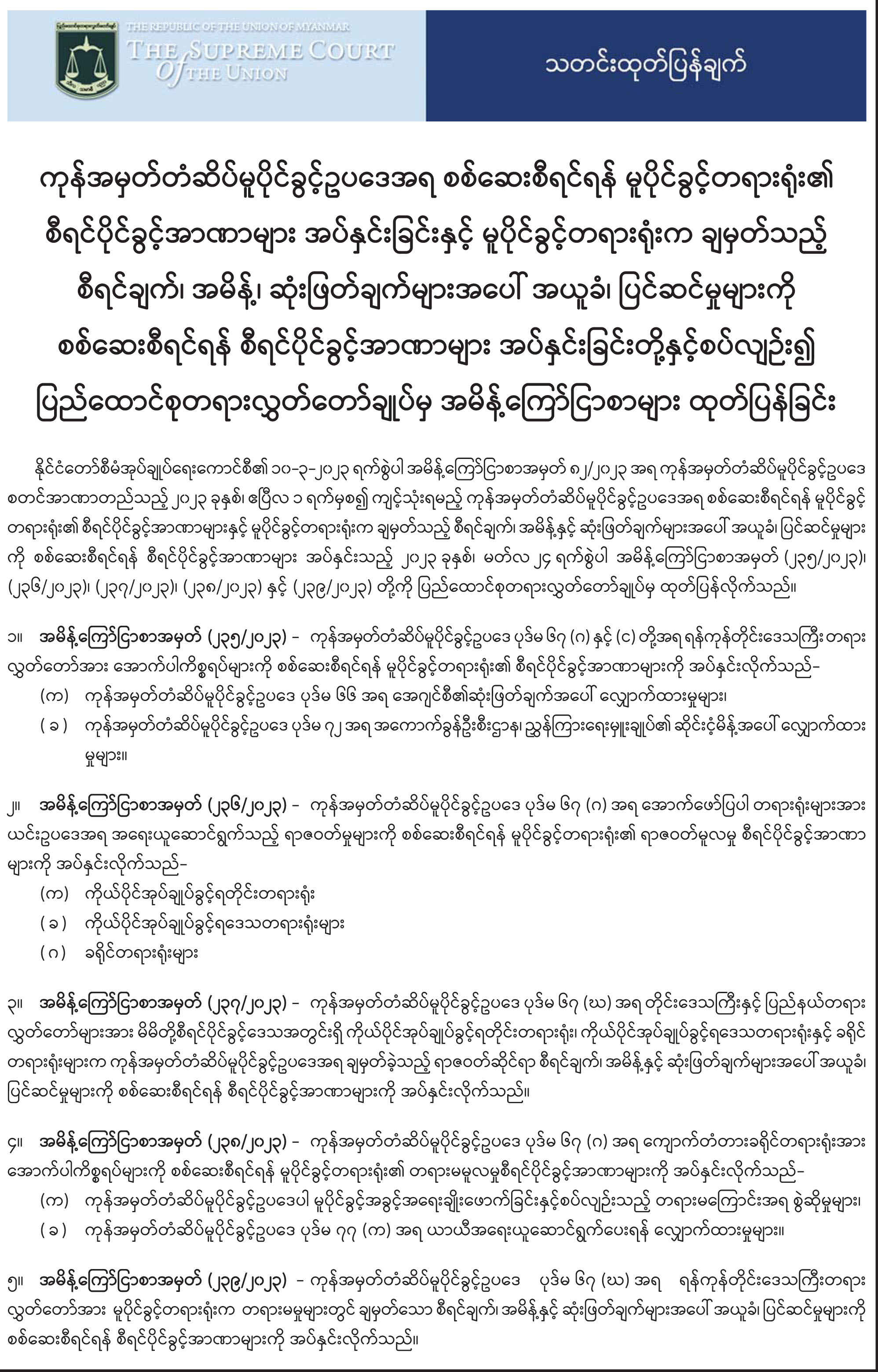 နိုင်ငံတည်ငြိမ်အေးချမ်းပြီး တရားဥပဒေစိုးမိုးမှုရှိစေရေး မိမိတို့အနေဖြင့် ဒီမိုကရေစီနည်းလမ်းဖြင့် ဆောင်ရွက်လျက်ရှိ တည်ငြိမ်အေးချမ်းပြီး တရားဥပဒေစိုးမိုးမှုရှိမှသာ ပြည်သူများ အလုပ်အကိုင်များ အဆင်ပြေချောမွေ့ပြီး နိုင်ငံဖွံ့ဖြိုးတိုးတက်လာမည်