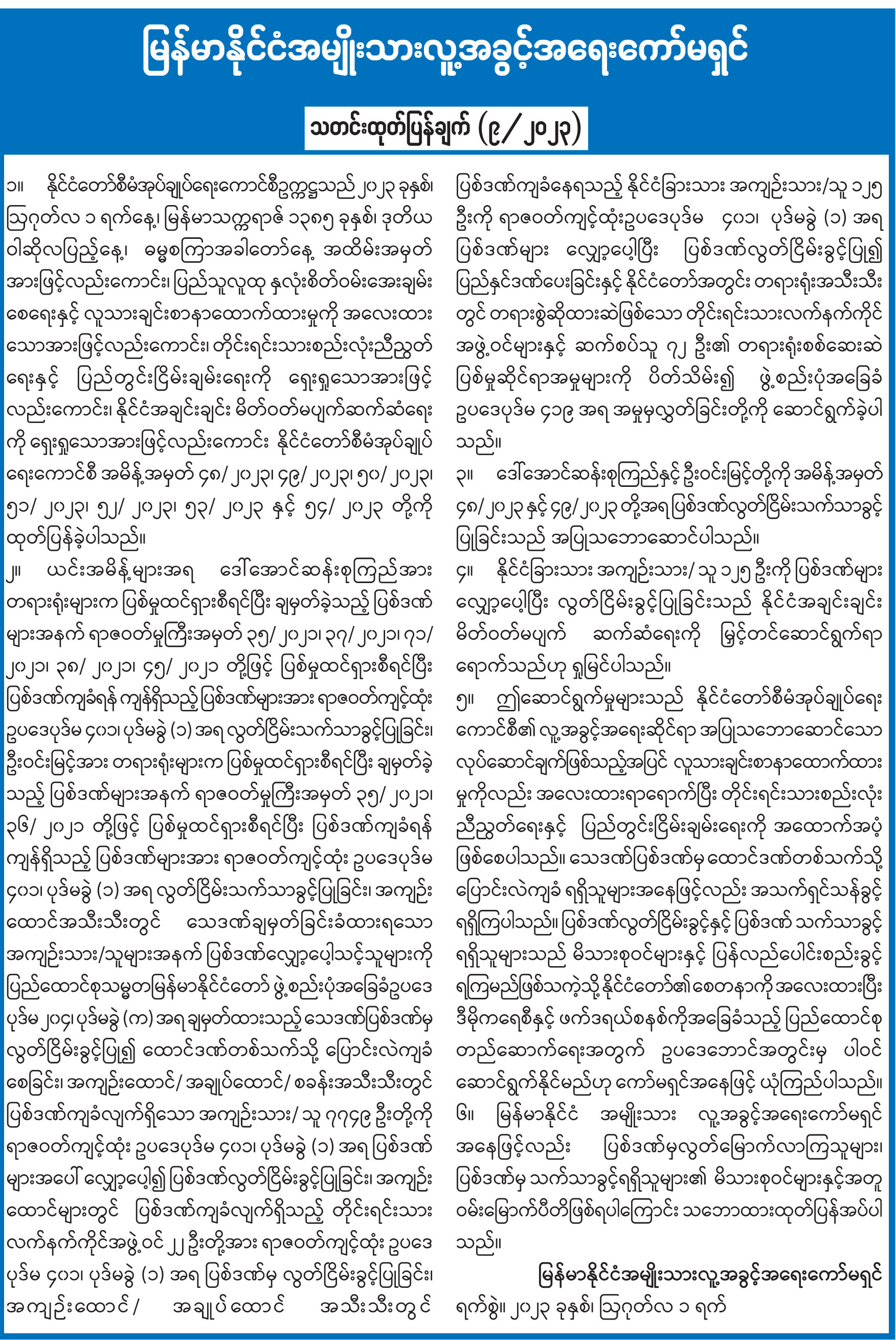 သတင်းထုတ်ပြန်ချက်(၉/၂၀၂၃)