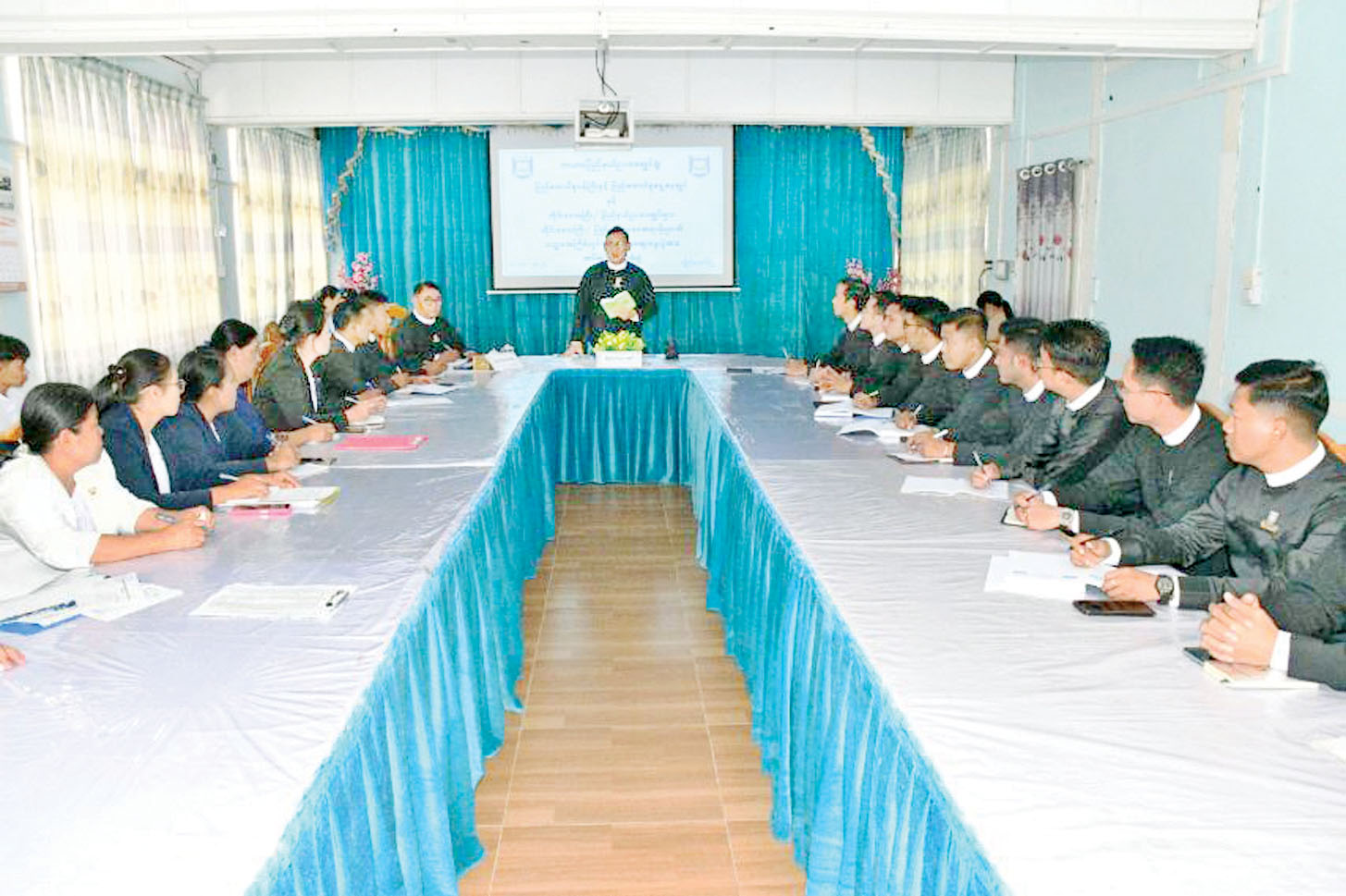 ဦးစွာ ကယားပြည်နယ်ဥပဒေချုပ် ဦးကြည်မြိုင်က ပြည်ထောင်စုဝန်ကြီးနှင့် ပြည်ထောင်စုရှေ့နေချုပ်၊ ဒုတိယဝန်ကြီးနှင့် ဒုတိယရှေ့နေချုပ်တို့၏ လမ်းညွှန်ချက်များကို ထပ်ဆင့်ရှင်းလင်း ပြောကြားပြီး ခရိုင်ဥပဒေအရာရှိများနှင့် မြို့နယ်ဥပဒေအရာရှိများသည် သက်ဆိုင်ရာခရိုင်နှင့် မြို့နယ်များတွင် စီမံခန့်ခွဲရေးနှင့် အုပ်ချုပ်ရေးကော်မတီအဖွဲ့ဝင်ဖြစ်ပြီး ခရိုင်နှင့် မြို့နယ် ရွေးကောက်ပွဲ ကော်မရှင်အဖွဲ့ခွဲ အဖွဲ့ဝင်များဖြစ်သဖြင့် ပါတီစုံဒီမိုကရေစီ အထွေထွေရွေးကောက်ပွဲများကို နှောင့်ယှက်ဟန့်တား ဖျက်ဆီးခြင်းမှ ကာကွယ်ပေးသည့် ဥပဒေနှင့် ပါတီစုံဒီမိုကရေစီ အထွေထွေ ရွေးကောက်ပွဲနှင့် သက်ဆိုင်သည့် ဥပဒေများကို နှံ့နှံ့စပ်စပ်လေ့လာ ဖတ်ရှုထားရန် လိုအပ်ကြောင်း မှာကြားသည်။