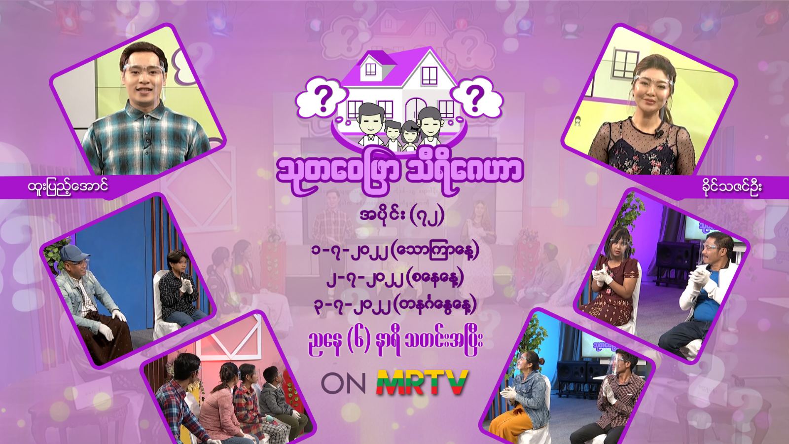 အဆိုပါကိုဗစ်-၁၉ဆိုင်ရာ အသိပညာမျှဝေမှုအစီအစဉ်ကို အစီအစဉ်တင်ဆက်သူ ထူးပြည့်အောင်နှင့် ခိုင်သဇင်ဦးတို့က တင်ဆက်ကြမည်ဖြစ်ပြီး  လူရွှင်တော်အသင်းမှ မိသားစုများ ပါဝင်ယှဉ်ပြိုင်ကြမည် ဖြစ်ရာ ယင်းပြိုင်ပွဲများကို ဇူလိုင် ၁ ၊ ၂ နှင့် ၃ ရက်နေ့များတွင် မြန်မာ့အသံနှင့် ရုပ်မြင်သံကြား၏ MRTV-HDမှ ညနေ ၆ နာရီ သတင်းအပြီးတွင် ထုတ်လွှင့် ပြသသွားမည်ဖြစ်ကြောင်း သိရသည်။