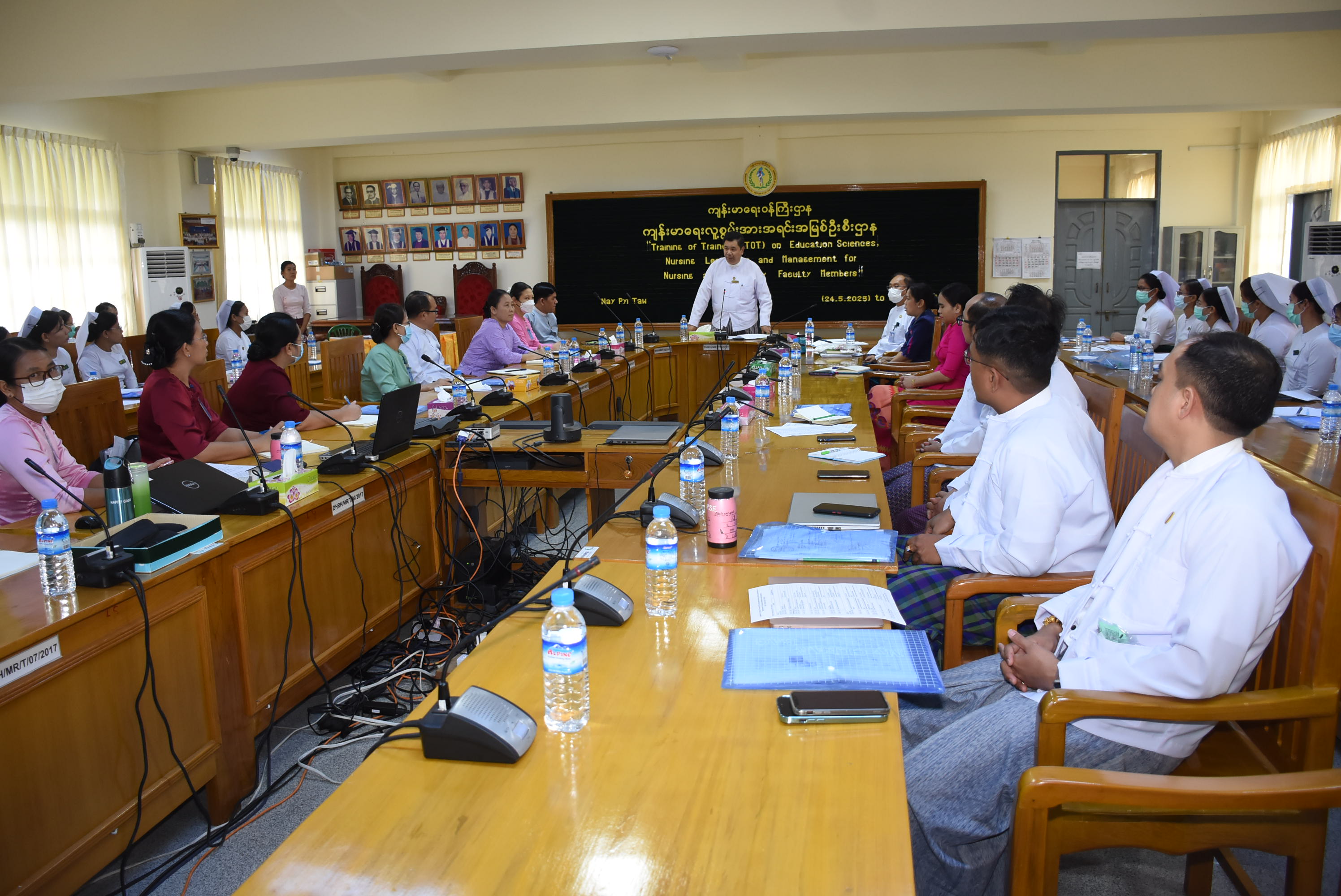 ကျန်းမာရေးဝန်ကြီးဌာန ကျန်းမာရေးလူ့စွမ်းအားအရင်းအမြစ်ဦးစီးဌာန မှ တိုင်းဒေသကြီး / ပြည်နယ်များရှိ သူနာပြု/သားဖွား/နှီးနွှယ်သင်တန်းကျောင်းများမှ “သူနာပြုနှင့် သားဖွား သင်ကြားရေး ဆရာများအတွက် ပညာရေးသိပ္ပံ၊ သူနာပြုခေါင်းဆောင်မှုနှင့် စီမံခန့်ခွဲမှုဆိုင်ရာသင်တန်း” (Training of Trainers (TOT) on Education Sciences, Nursing Leadership and Management for Nursing and Midwifery Faculty Members) ဖွင့်ပွဲ အခမ်းအနားကို ယနေ့ နံနက် ၉နာရီခွဲ တွင် ကျန်းမာရေးလူ့စွမ်းအားအရင်းအမြစ်ဦးစီးဌာန၊ အစည်းအဝေးခန်းမ၌ ကျင်းပရာ ကျန်းမာရေး လူ့စွမ်းအားအရင်းအမြစ်ဦးစီးဌာနမှ ညွှန်ကြားရေးမှူးချုပ်၊ ဒုတိယညွှန်ကြားရေးမှူးချုပ်၊ ညွှန်ကြားရေးမှူးများ၊ ဒုတိယညွှန်ကြားရေးမှူးများ၊ လက်ထောက်ညွှန်ကြားရေးမှူးများ၊ သင်တန်း တက်ရောက်မည့် သူနာပြု/ သားဖွားသင်တန်းကျောင်းများမှ ကျောင်းအုပ်၊ သူနာပြုအရာရှိ၊ နည်းပြများ၊ ဒုနည်းပြများ နှင့် တာဝန်ရှိပုဂ္ဂိုလ်များ တက်ရောက်ခဲ့ကြပြီး ကျန်းမာရေးလူ့စွမ်းအား အရင်းအမြစ်ဦးစီးဌာန ညွှန်ကြားရေးမှူးချုပ် ပါမောက္ခဒေါက်တာတင်ထွန်း က အဖွင့်အမှာစကား ပြောကြားသည်။