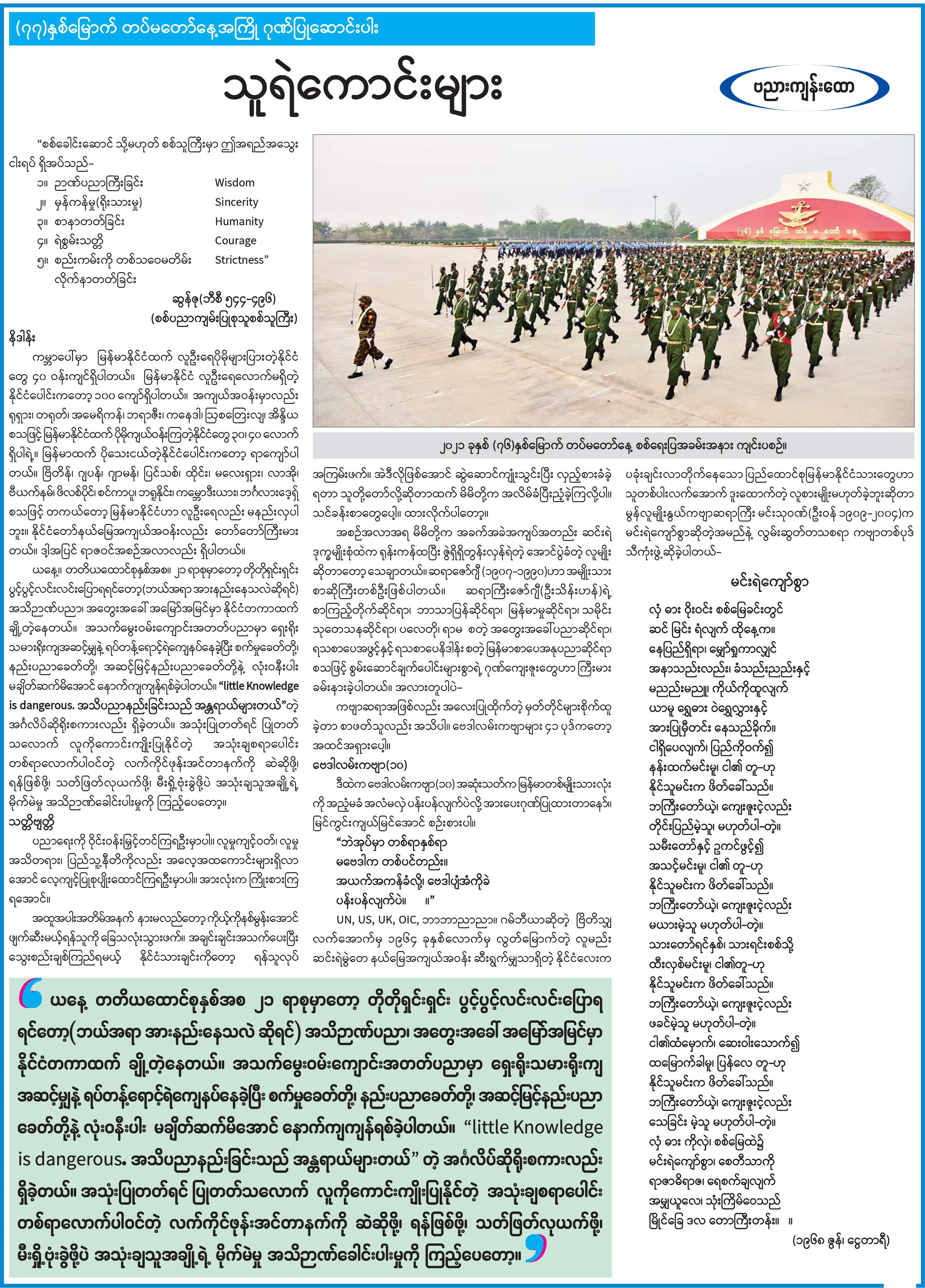 တပ်မတော်စွမ်းရည်သတ္တိဆိုင်ရာ ဂုဏ်ထူးဆောင်တံဆိပ်များ ချီးမြှင့်အပ်နှင်းခြင်းအခမ်းအနား ကျင်းပ