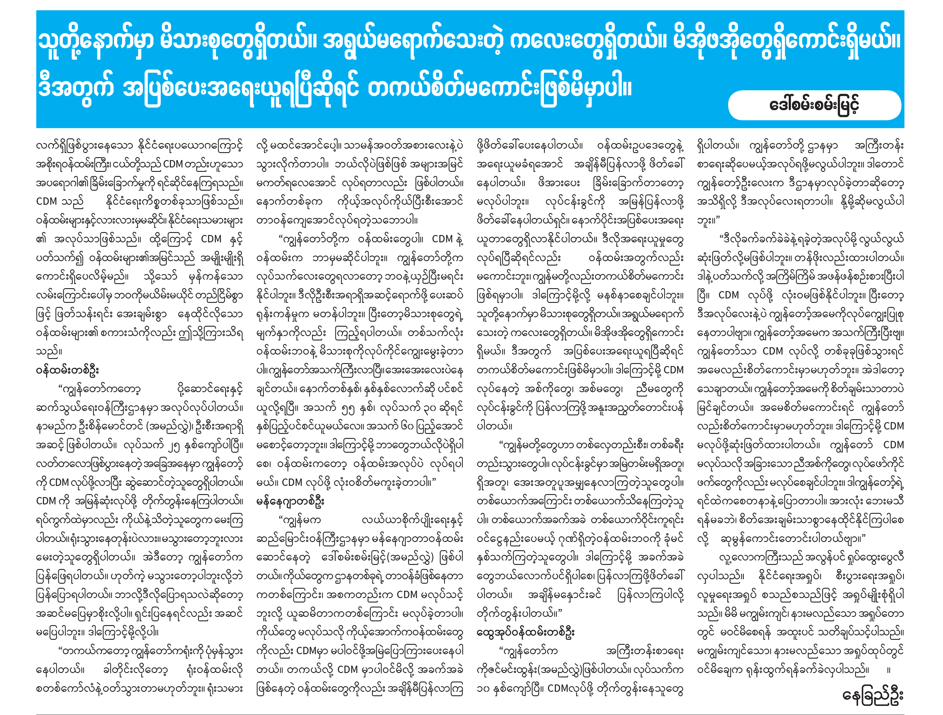 သူတို့နောက်မှာ မိသားစုတွေရှိတယ်။ အရွယ်မရောက်သေးတဲ့ ကလေးတွေရှိတယ်။ မိအိုဖအိုတွေ ရှိကောင်းရှိမယ်။ ဒီအတွက် အပြစ်ပေး အရေးယူရပြီဆိုရင် တကယ်စိတ်မကောင်း ဖြစ်မိမှာပါ။