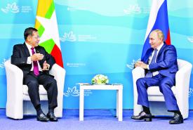 ပြည်ထောင်စုသမ္မတ မြန်မာနိုင်ငံတော် ယာယီသမ္မတ နိုင်ငံတော်လုံခြုံရေးနှင့် အေးချမ်းသာယာရေး ကော်မရှင်ဥက္ကဋ္ဌ ဗိုလ်ချုပ်မှူးကြီးမင်းအောင်လှိုင်ထံ ရုရှားဖက်ဒရေးရှင်းနိုင်ငံ ဒူးမားလွှတ်တော် ဒုတိယဥက္ကဋ္ဌ ဦးဆောင်သည့် ကိုယ်စားလှယ်အဖွဲ့က လာရောက်ဂါရဝပြုတွေ့ဆုံ