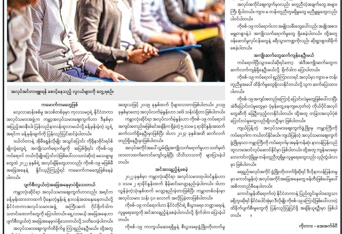 အလုပ်သမားဈေးကွက်ဖွံ့ဖြိုးမှသာ ကိုဗစ်ကြောင့်ပြိုလဲနေတဲ့ ကမ္ဘာကြီးကို ကယ်တင်နိုင်မယ်