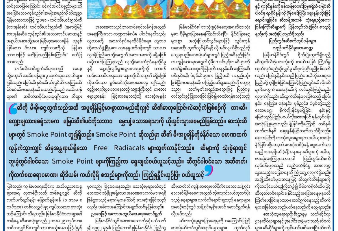 ဘေးကင်းလုံခြုံစေဖို့ အရည်အသွေးမီ ဆီကိုသာ ဝယ်ယူသုံးစွဲကြပါစို့