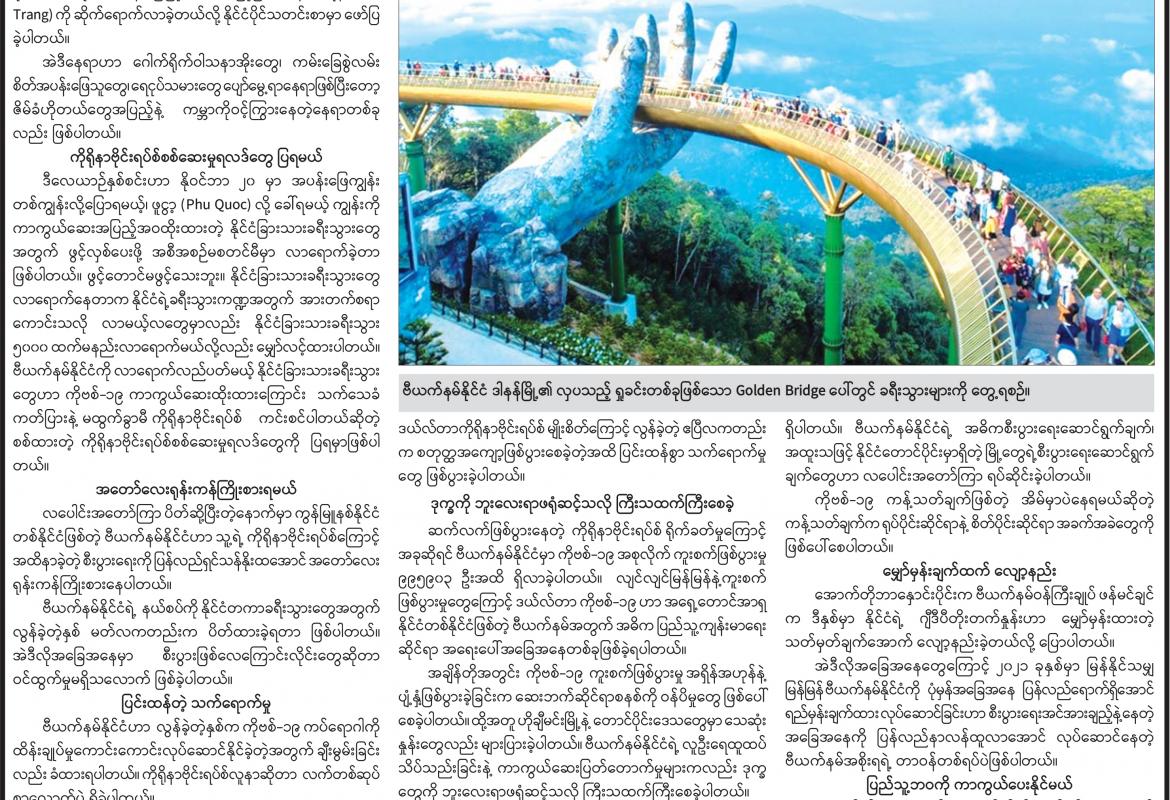 ကိုဗစ်- ၁၉ ကပ်ရောဂါ ထိန်းချုပ်မှုနှင့်အတူ နိုင်ငံစီးပွားရေး ပြန်လည်ဦးမော့လာစေရန် ခရီးသွားကဏ္ဍဖြင့် ပြန်လည်နိုးထ ကြိုးပမ်းလာတဲ့ ဗီယက်နမ်