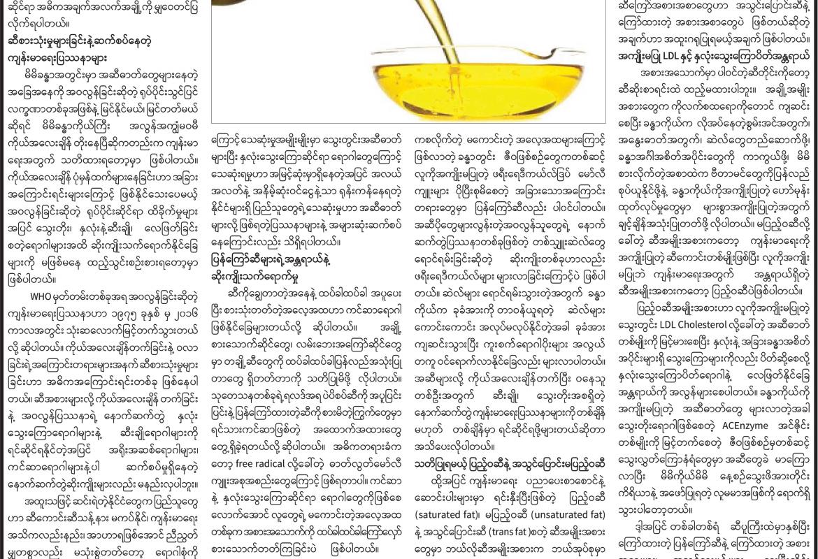 စားသုံးဆီနှင့် နောက်ဆက်တွဲ ကျန်းမာရေးပြဿနာများ