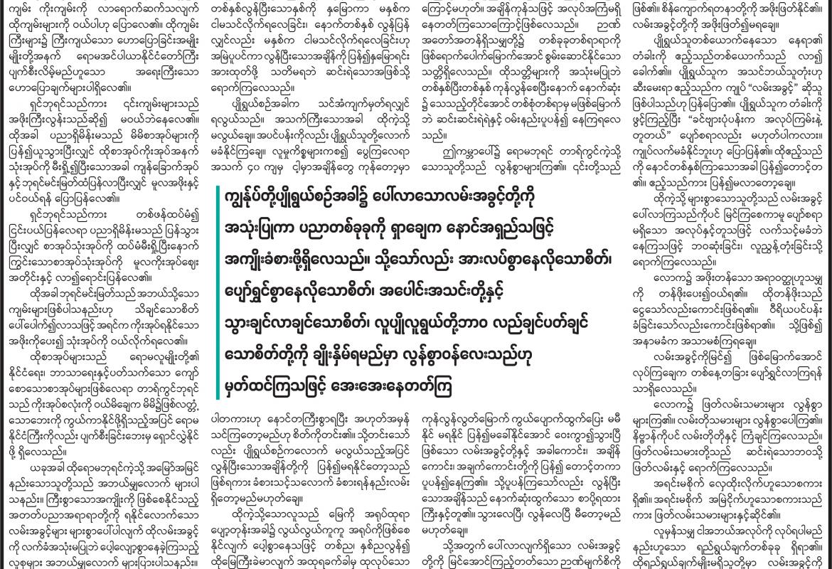 အကြမ်းသမားအဖြစ် ကလေးများဘဝ မနစ်မွန်းစေရေး အားလုံးဝိုင်းဝန်းကူညီဆောင်ရွက်ပေး