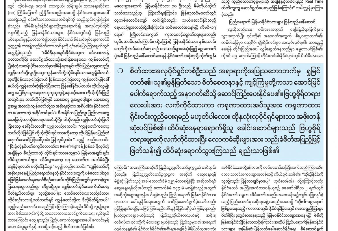 ကိုဗစ်-၁၉ ရောဂါ ကာကွယ်ထိန်းချုပ်ရေးဆိုင်ရာ ဆောင်ရွက်ချက်များအကြောင်း သိကောင်းစရာ
