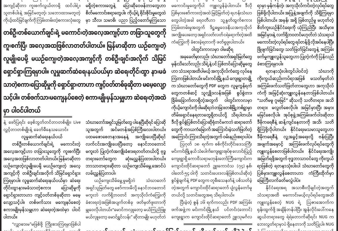 အယ်ဒီတာထံ ပေးစာ