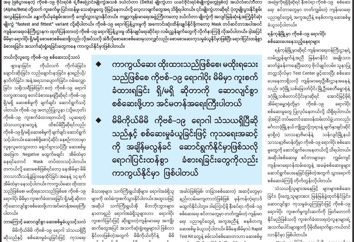 များများစစ်၊ မြန်မြန်တွေ့၊ စောစောကုသမှုခံယူခြင်းဖြင့် ကိုဗစ်-၁၉ ရောဂါ ကူးစက်မှုလျှော့ချကြပါစို့