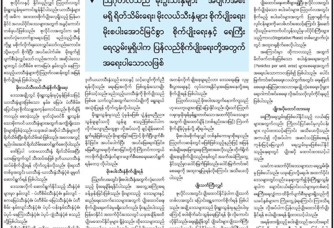 ဩဂုတ်လမှာ စိုက်ပျိုးရေးရာ ဆောင်ရွက်စရာ