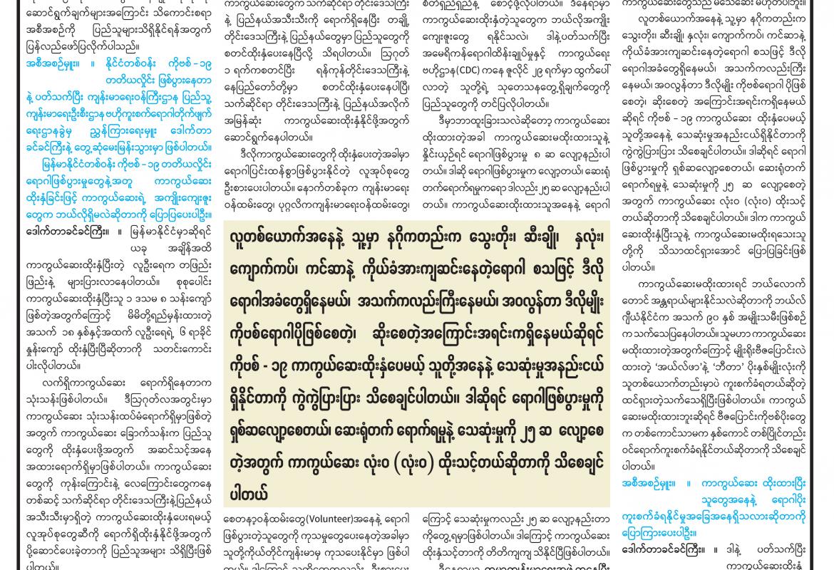 ကိုဗစ်-၁၉ ရောဂါ ကာကွယ်ထိန်းချုပ်ရေးဆိုင်ရာ ဆောင်ရွက်ချက်များအကြောင်း သိကောင်းစရာ အစီအစဉ်