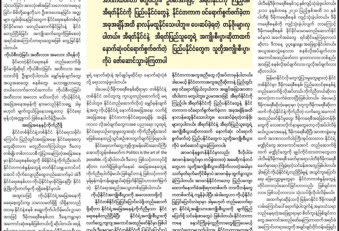 စိတ်ကူးယဉ်နိုင်ငံရေးမှ နိုးထချိန်တန်ပြီ