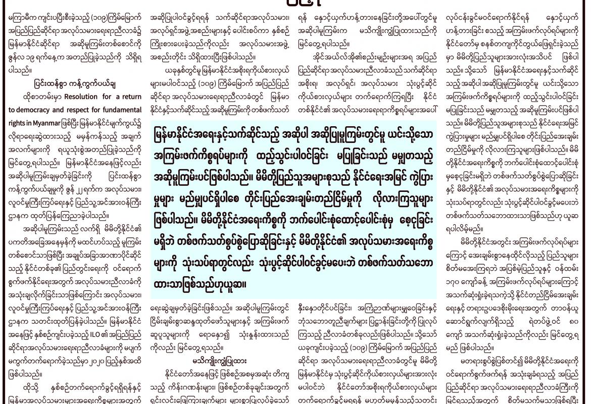 အလုပ်သမားညီလာခံကို အသုံးမချပါနဲ့….