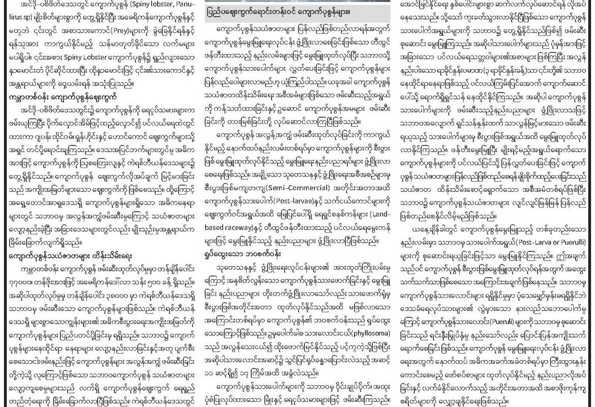 ကျောက်ပုဇွန်မွေးမြူရေးလုပ်ငန်း ဖွံ့ဖြိုးမှုနှင့် သုတေသနပြုလုပ်ဆောင်ရွက်နိုင်ရေး အခြေအနေ