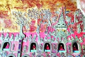 ရွှေရန်ပြေစေတီမှ မှန်စီရွှေချ နံရံဆေးရေးပန်းချီ အနုလက်ရာများ