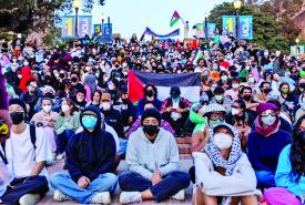 မီးစတစ်ဖက် ရေမှုတ်တစ်ဖက် စံနှစ်မျိုးအောက်က ဆန္ဒပြကျောင်းသားများ