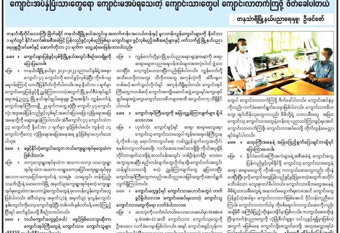 ကျောင်းအပ်နှံပြီးသားတွေရော ကျောင်းမအပ်ရသေးတဲ့ ကျောင်းသားတွေပါ ကျောင်းလာတက်ကြဖို့ ဖိတ်ခေါ်ပါတယ်