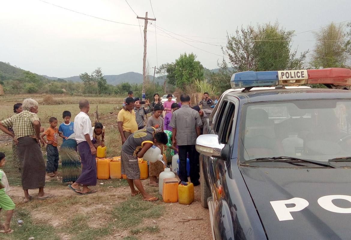 သောက်ရေအခက်အခဲဖြစ်နေသည့် ကုန်းကျိုင်းကျေးရွာသို့ မိုင်းပန်မြို့နယ် မြန်မာနိုင်ငံရဲတပ်ဖွဲ့မှ သောက်ရေသန့်များ သွားရောက်လှူဒါန်း