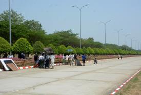 နေပြည်တော် အပြည်ပြည်ဆိုင်ရာလေဆိပ်ကို နောက်ခံထား၍ လမ်းလယ်ကျွန်းတစ်လျှောက် သစ်ပင်ပန်းမန်များဖြင့် လှပနေသည့် လေဆိပ်အဝင်လမ်းတစ်နေရာတွင် ..........