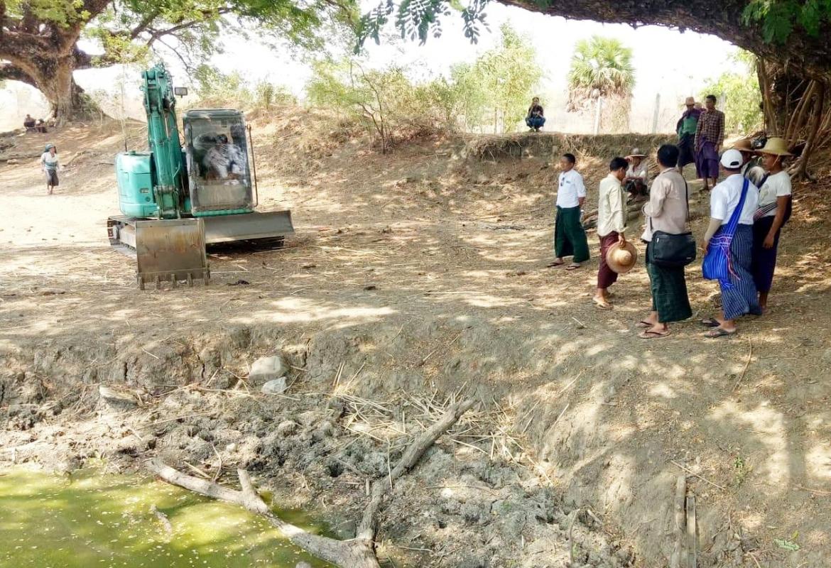 မင်းတုန်းမြို့နယ် ကန်လည်ကျေးရွာတွင် ကျေးရွာ မိုးရေလှောင်ကန်အား ပြန်လည်တူးဖော်