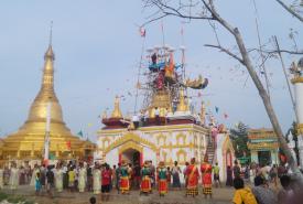 မိုင်းယောင်းမြို့နယ်ရှိ ရွှေညောင်ပင်၌ ကဆုန်ညောင်ရေသွန်း(ဗုဒ္ဓ)နေ့၌ ကုသိုလ်ပြုသူများဖြင့် စည်ကား